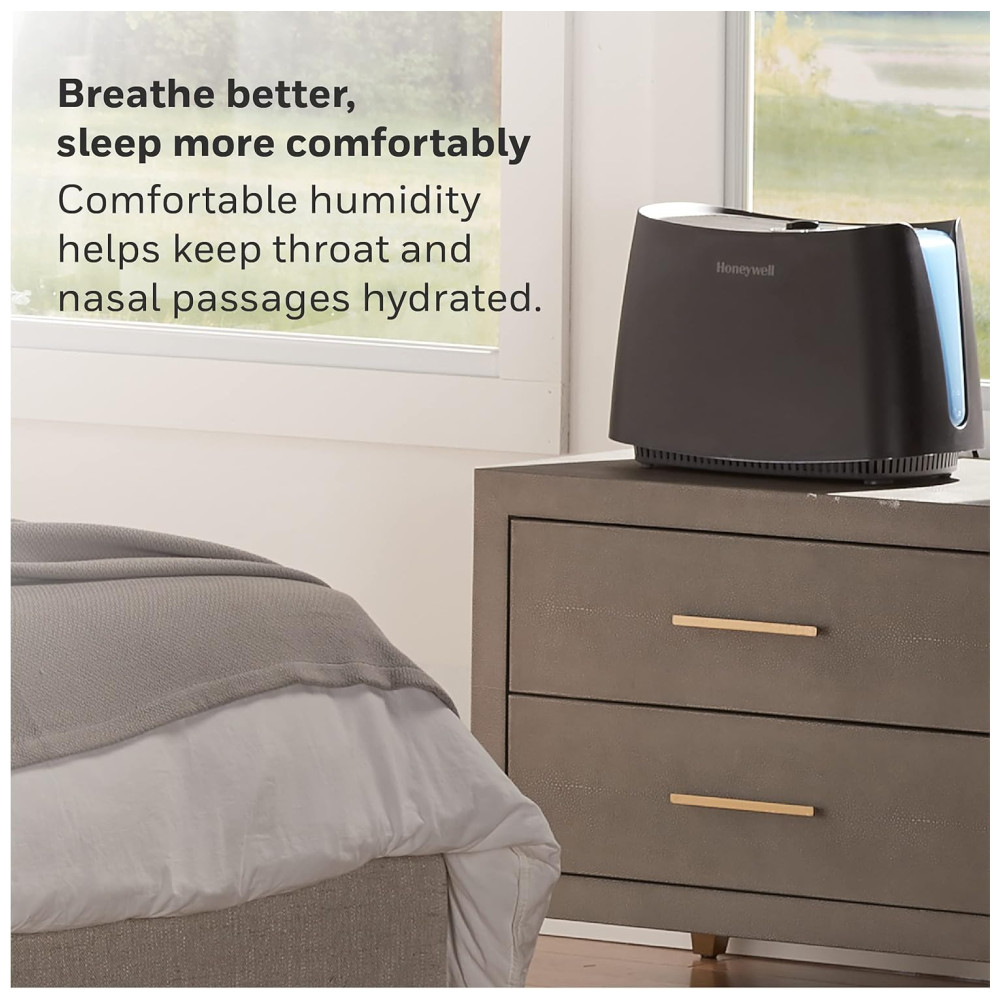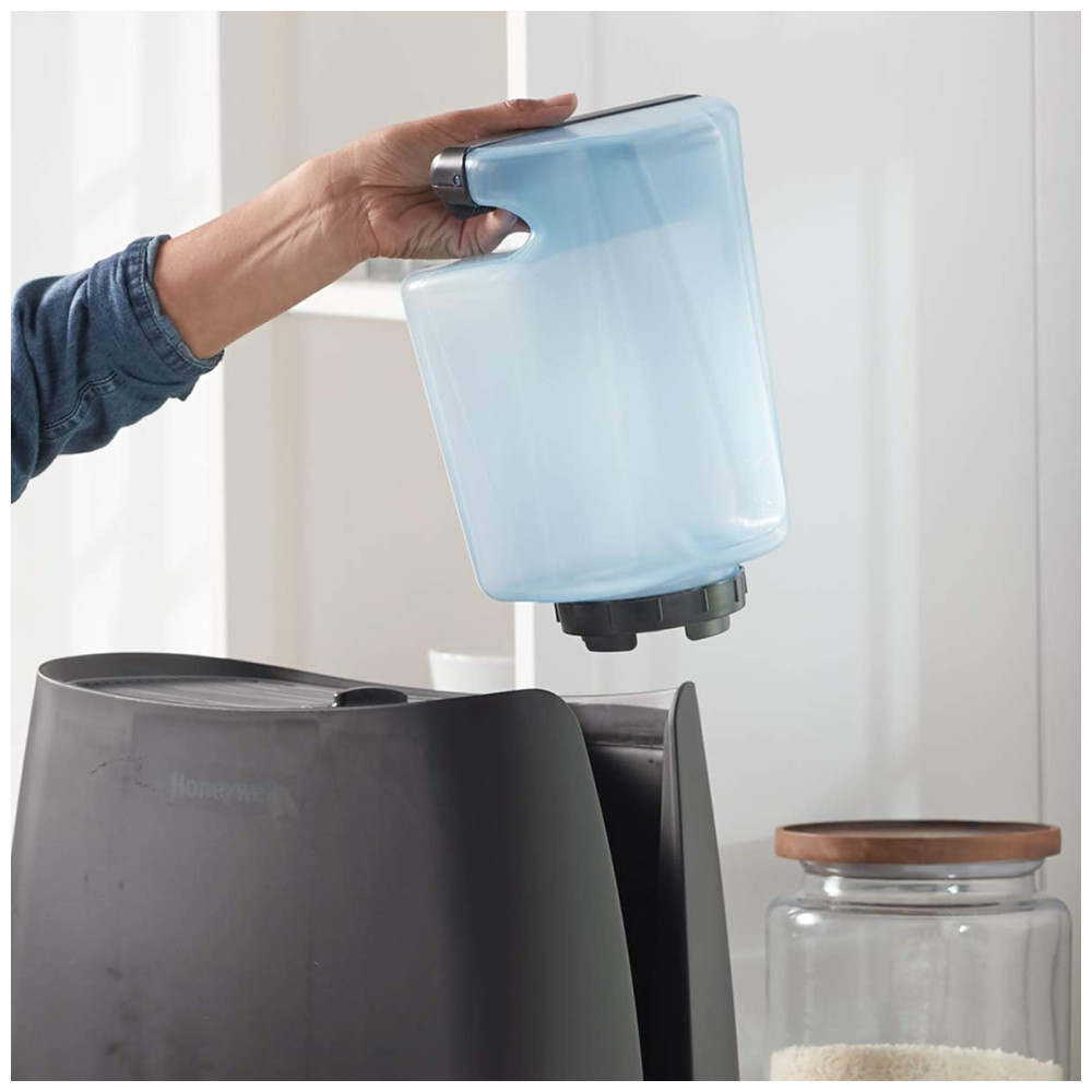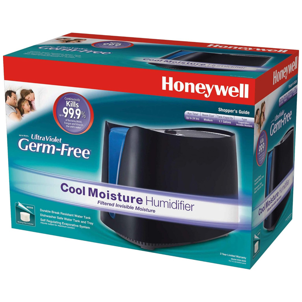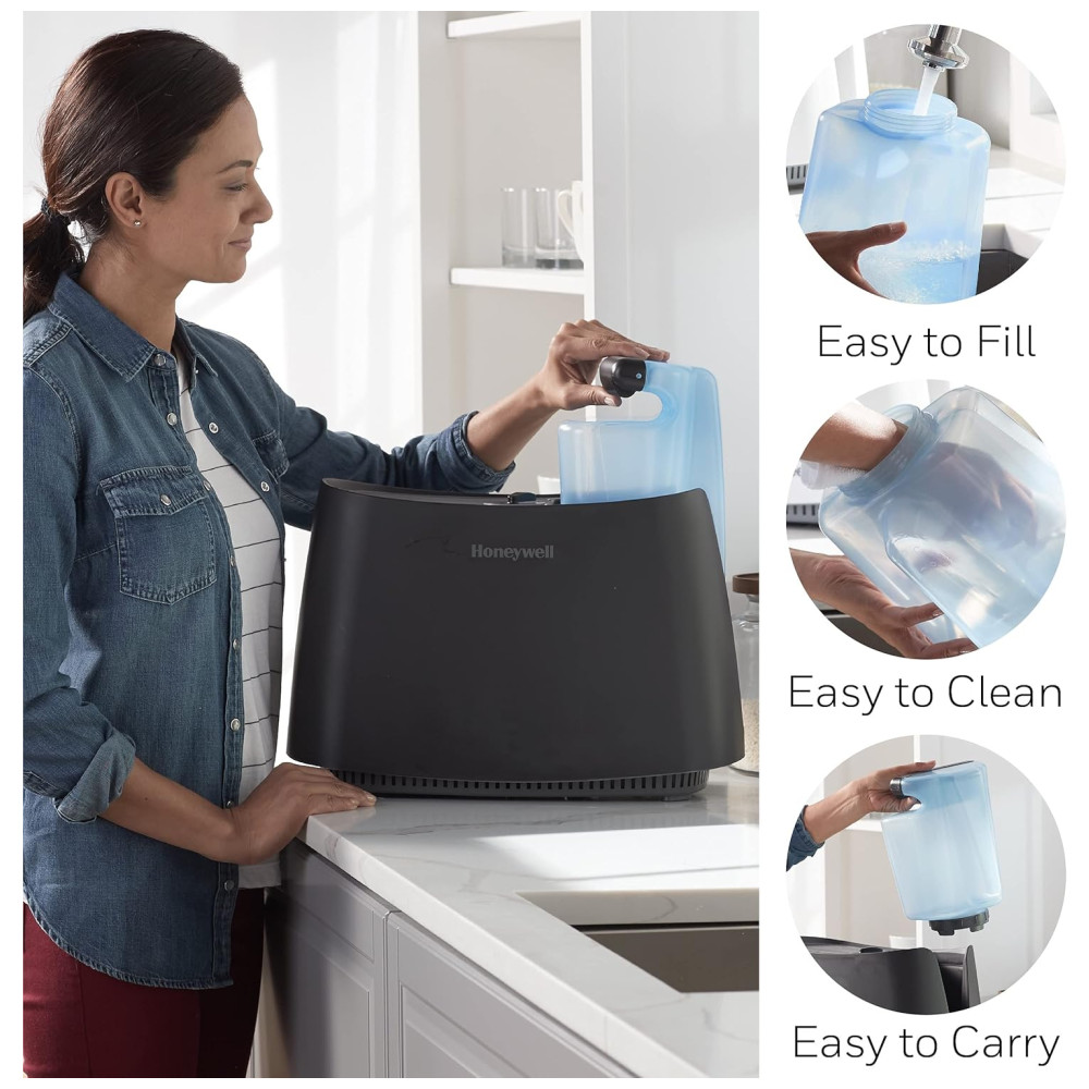 UMIDADE INVISÍVEL DO LIMPEZA O umidificador Honeywell Cool Moisture traz efetivamente umidade invisível para sua casa. Utiliza a tecnologia UV e um filtro de absorção para ajudar a tratar a água e capturar minerais para mantê los fora do ar para uma névoa mais limpa.