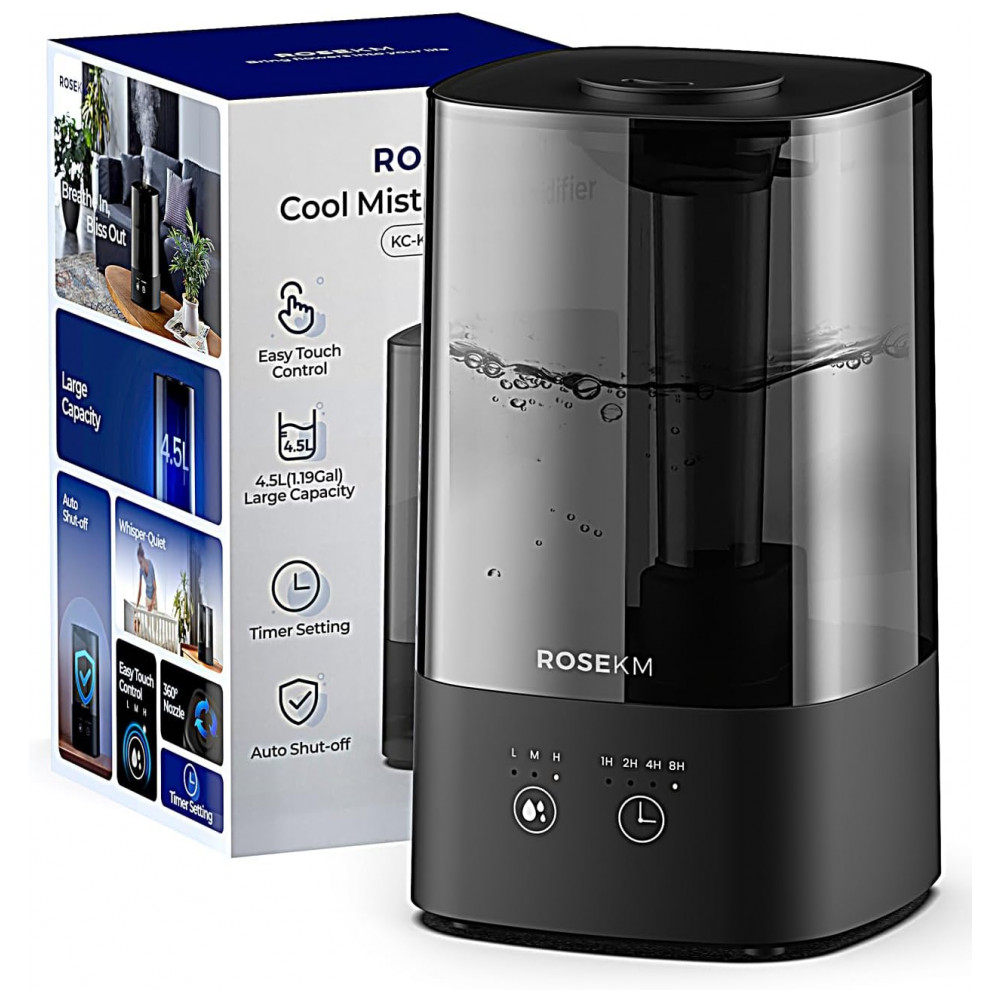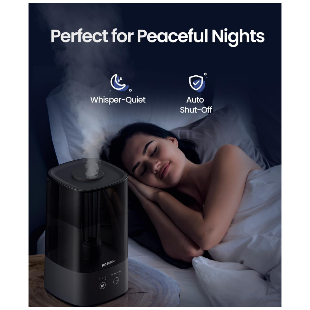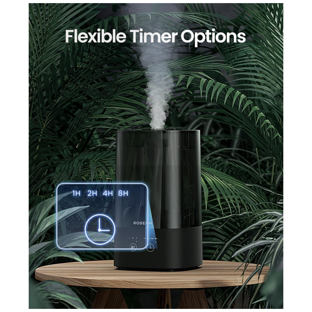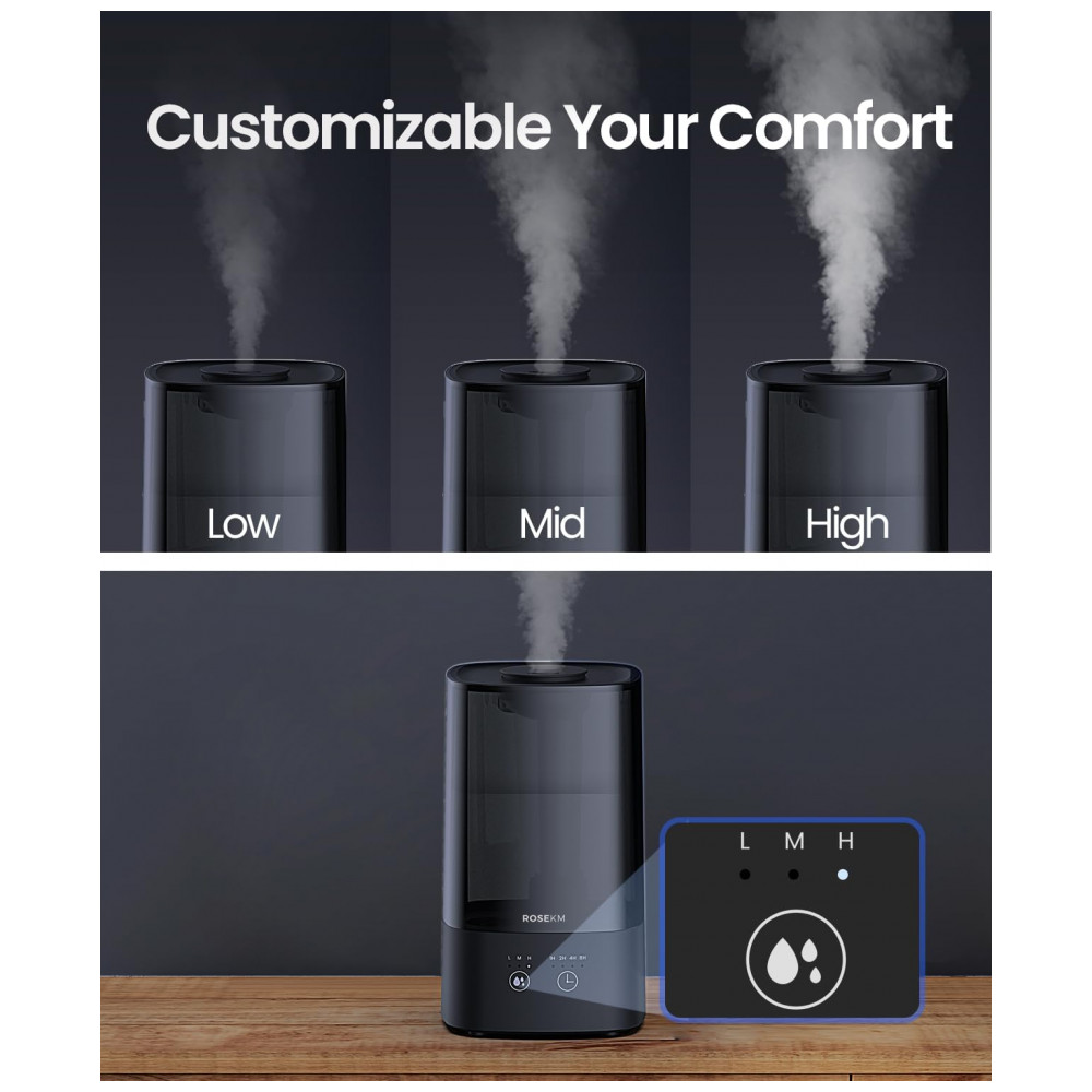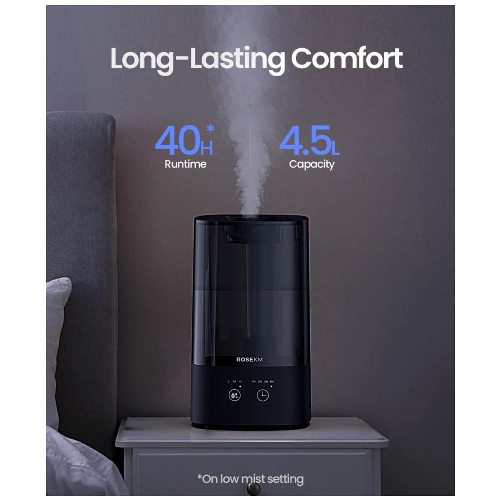 Umidificador para Quarto 45L com Temporizador Nível de Névoa Ajustável e Bico 360 Rosekm KCKM13T Preto