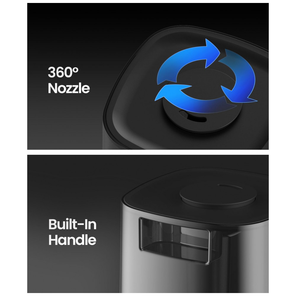 COBERTURA CONTROLADA: Com o bico 360, você controla a direção da névoa, proporcionando umidade concentrada onde é mais necessária.