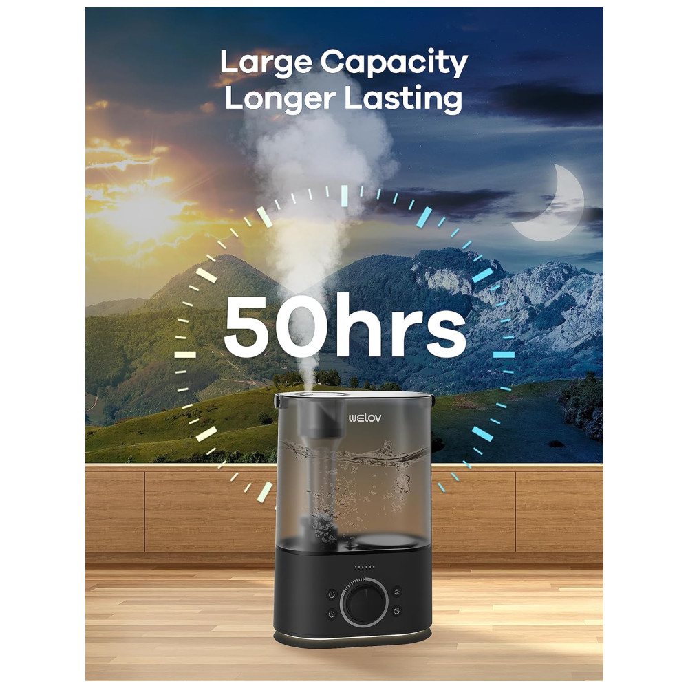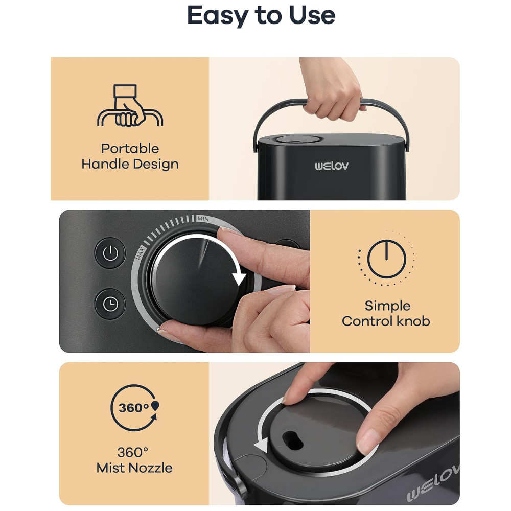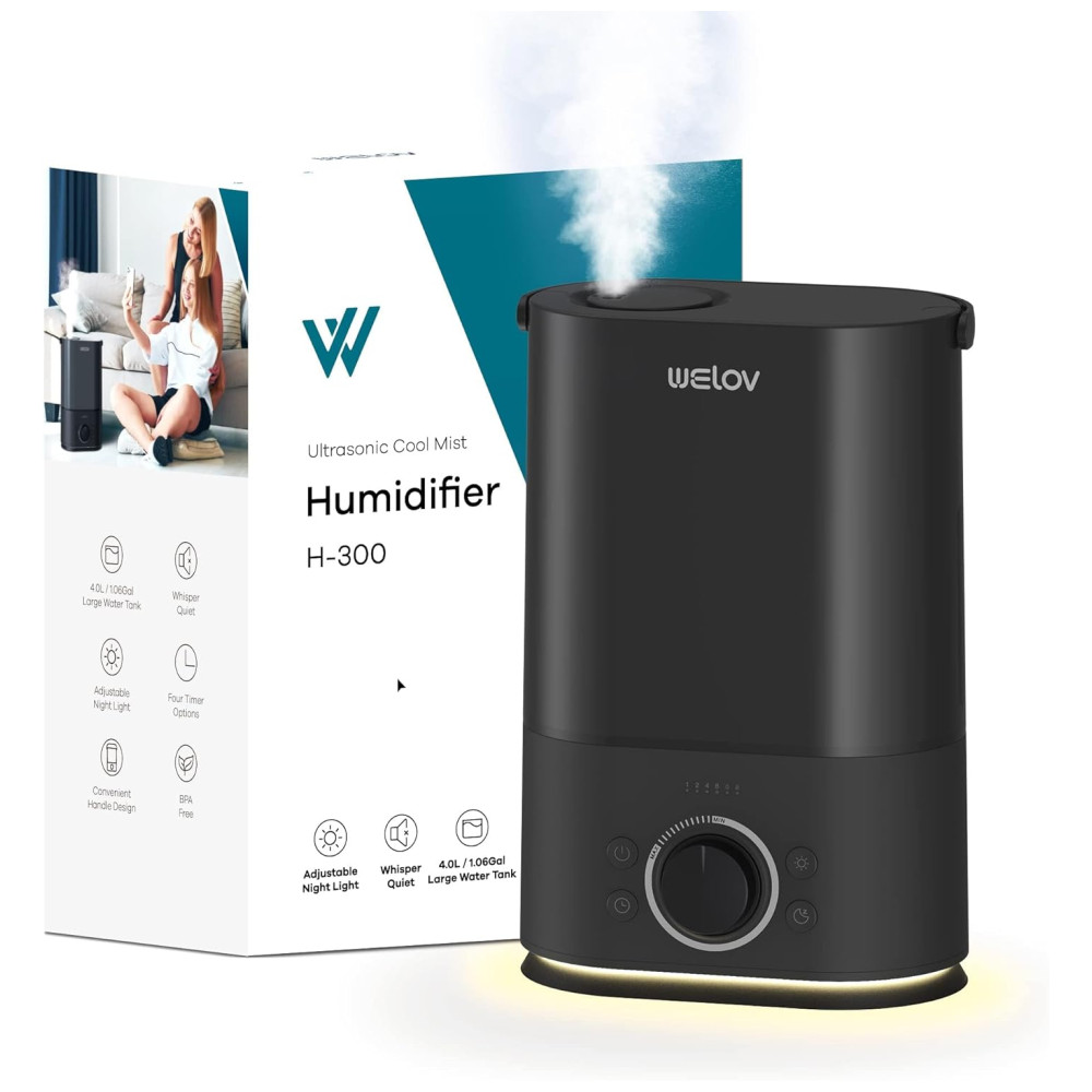 Umidificador para Quarto 4L com Vaporizador de Ar Silencioso Temporizador e Luz Noturna WELOV H300G Preto