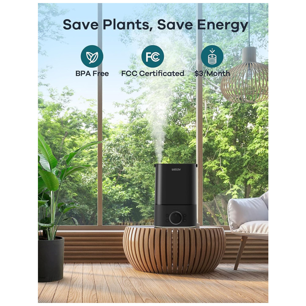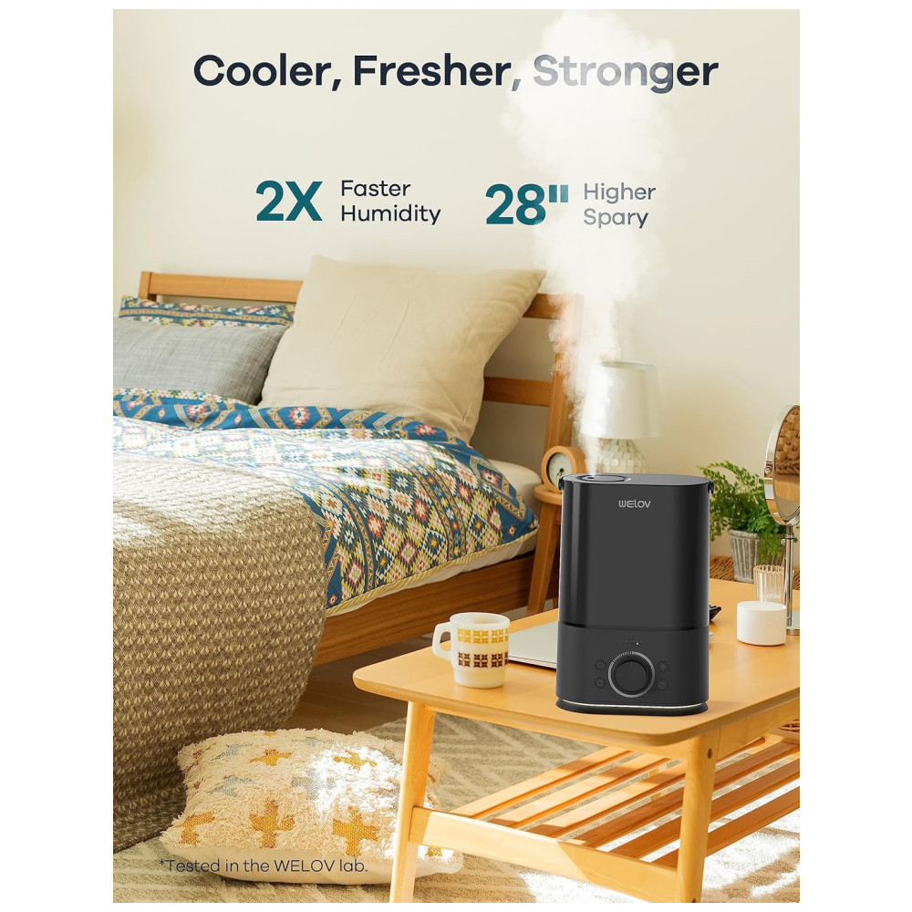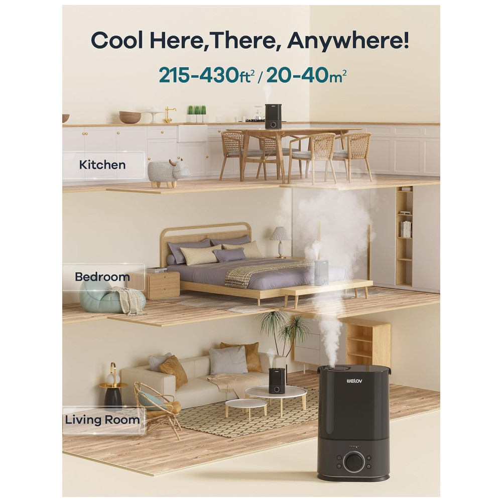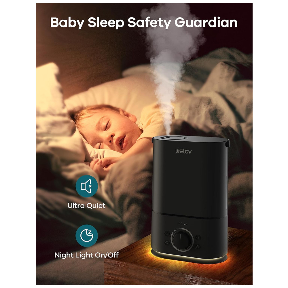 Umidificador para Quarto 4L com Vaporizador de Ar Silencioso Temporizador e Luz Noturna WELOV H300G Preto