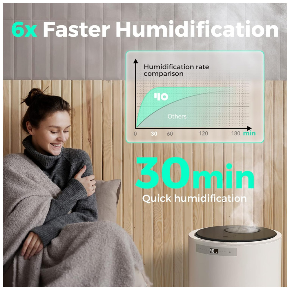 Umidificador para Salas Grandes 92 m2 com 3 Níveis de Névoa 10 Litros YO Branco