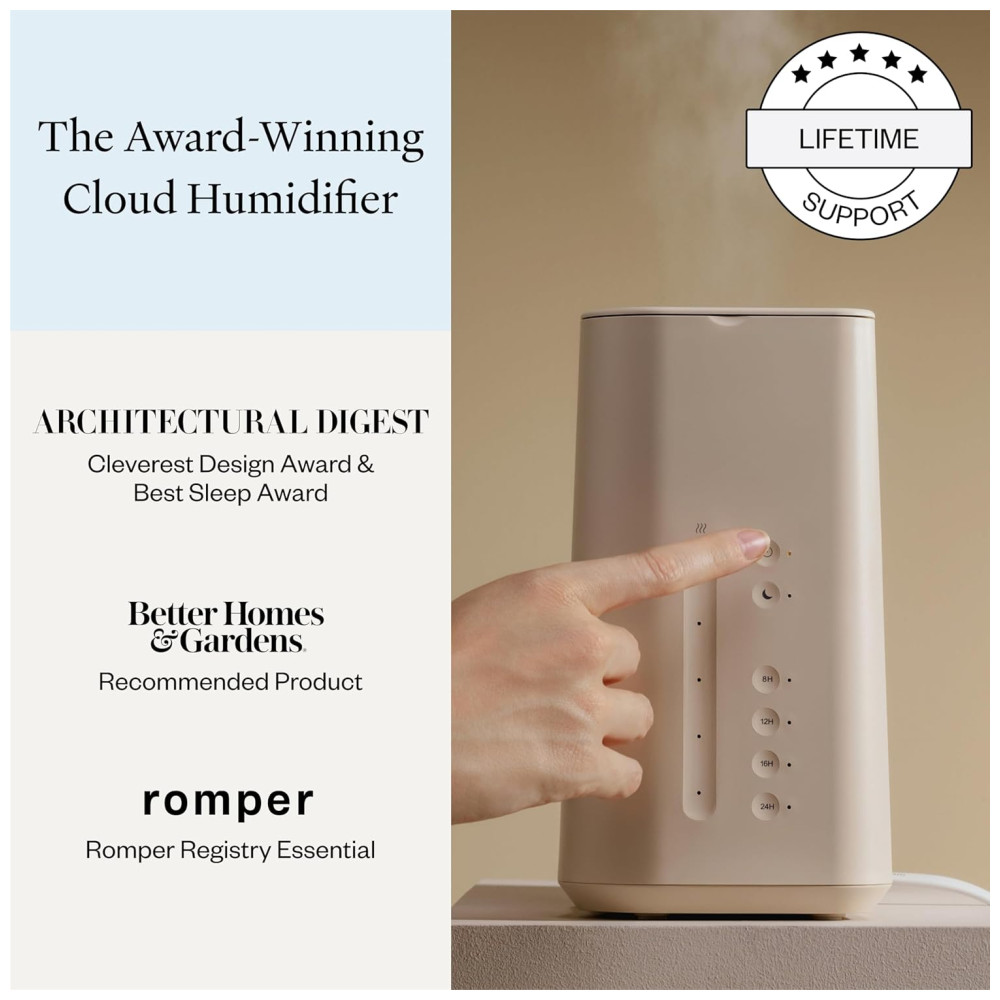 MELHOR PARA VOCÊ O Umidificador Nuvem hidrata a pele, deixa o cabelo brilhante e melhora o sono. Além disso, com 600 pés quadrados. capacidade de umidificação, Cloud é ótimo para qualquer ambiente.
