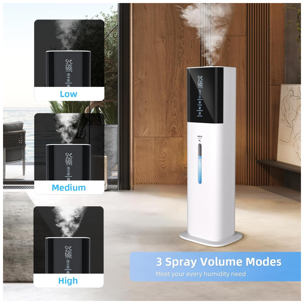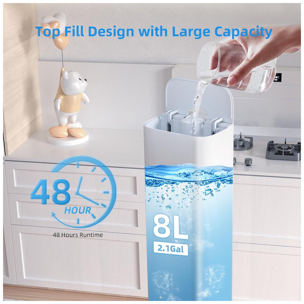 Você está procurando um umidificador de alta qualidade para seu quarto ou sala grande Não procure mais, nosso umidificador de 8 litros 2,11 galões com temporizador Este poderoso dispositivo possui um bocal de 360 e configurações de 3 velocidades, permitindo controlar facilmente a umidade do seu espaço. Ele cria um nível de condensação interno reconfortante que acalma a pele e ajuda você a respirar com mais facilidade, sem transformar o ambiente em um pântano de névoa ou deixando pequenas gotas de umidade nas paredes.