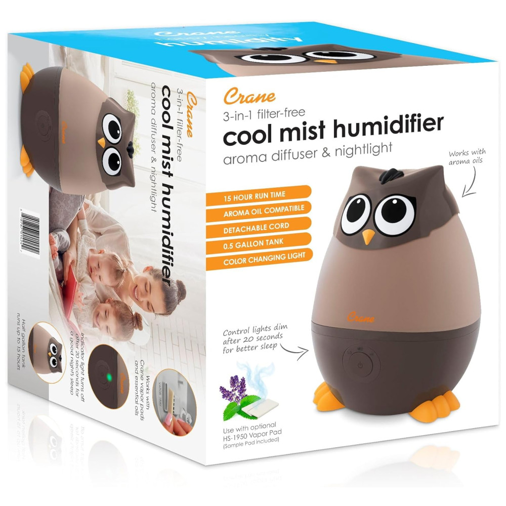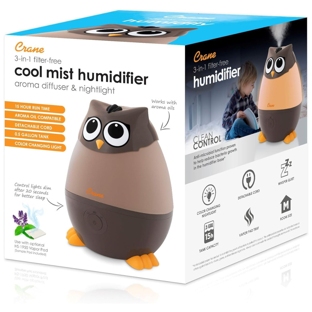 Apresentamos o Mini Owl, um umidificador de névoa gelada da Crane com difusor de aroma e design encantador, ideal para quartos de crianças e qualquer ambiente de convivência.