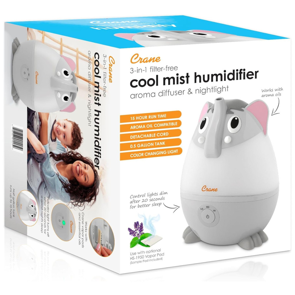 Conheça o Mini Elefante, o adorável umidificador Crane com névoa gelada e difusor de aroma. Com um design premiado e desempenho excepcional, ele é ideal para quartos de crianças ou qualquer ambiente de convivência.