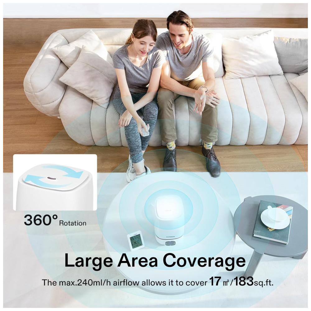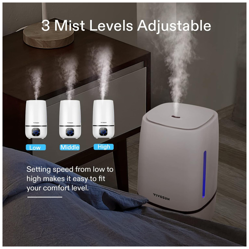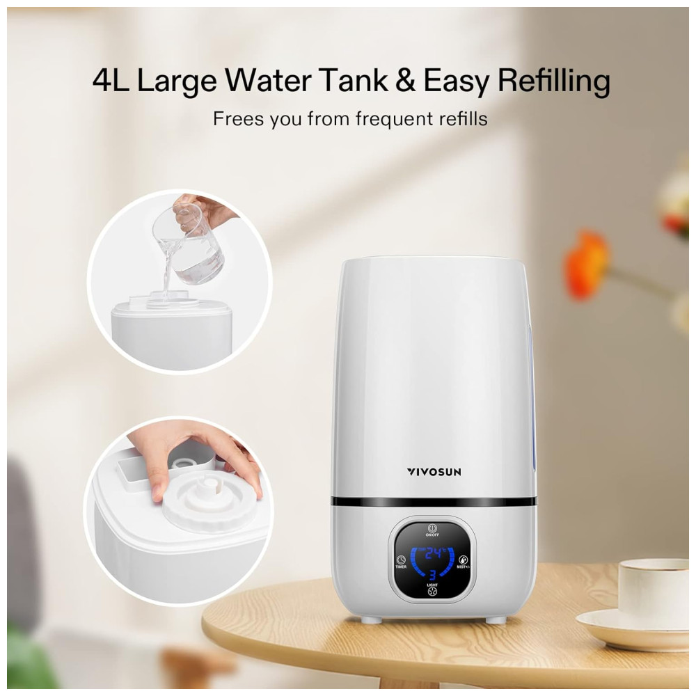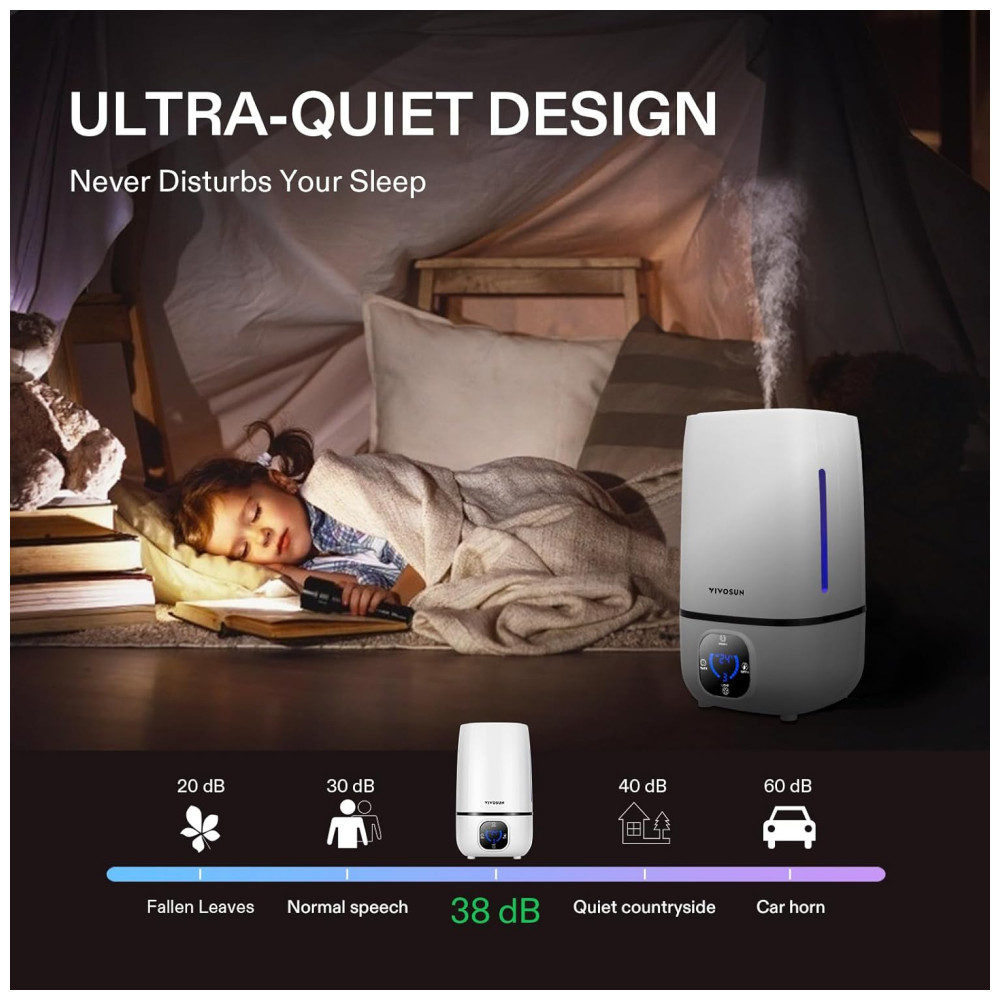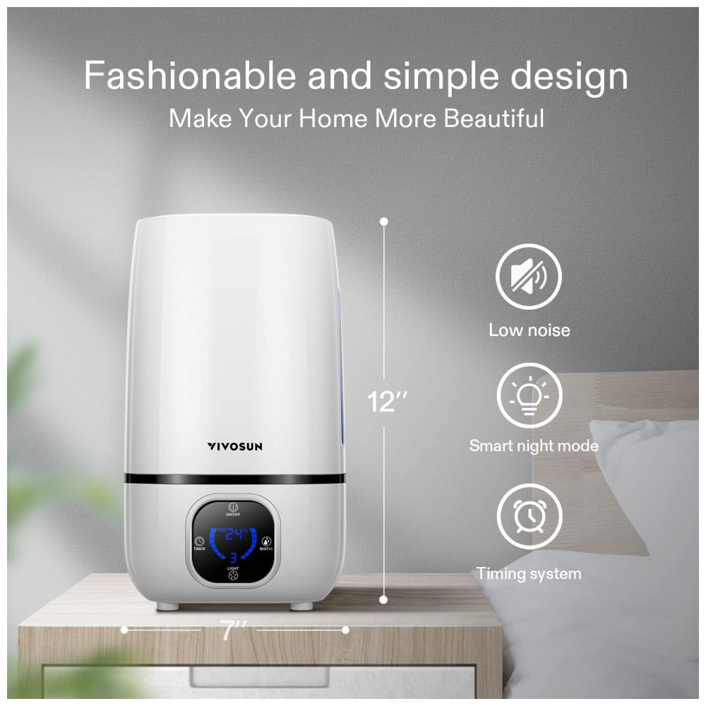 Você também pode ativar o modo de suspensão para desligar todas as luzes e sons. Com uma função de temporizador, é possível programá-lo para funcionar por 1, 2, 4 ou 8 horas. Este umidificador é ideal para idosos, bebês, animais de estimação e plantas, ajudando a manter níveis adequados de umidade e evitando o ressecamento durante o inverno.