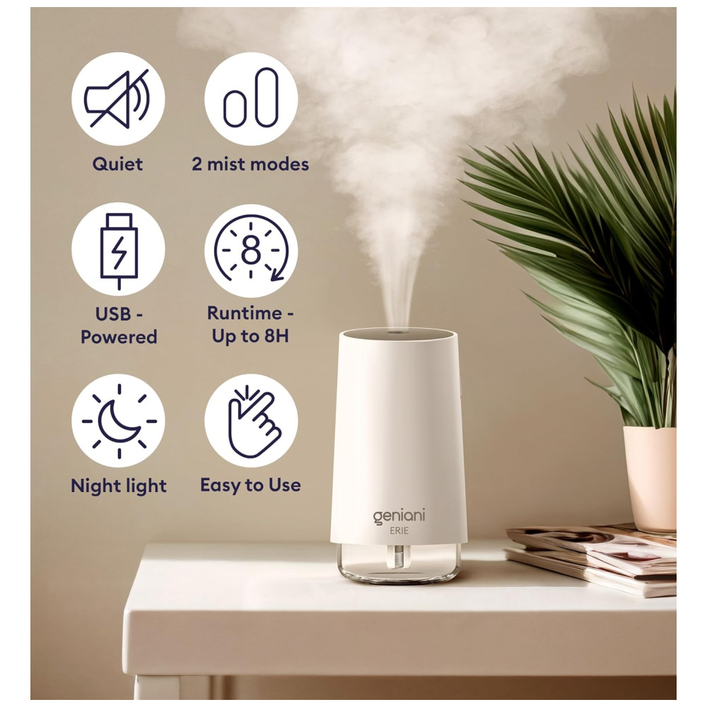 Umidificador Ultrassônico 250ML com Luz Noturna e Desligamento Automático GENIANI Erie Branco