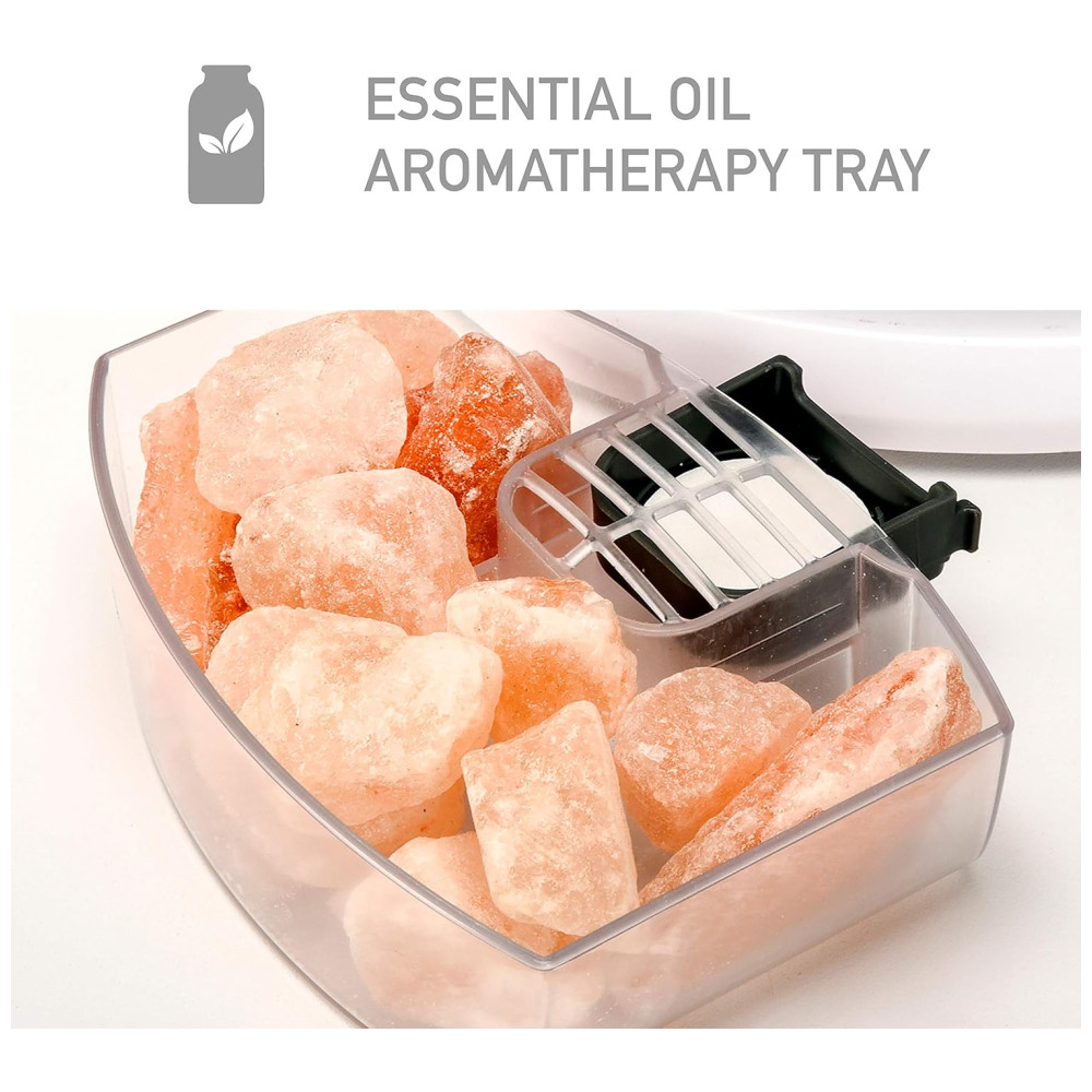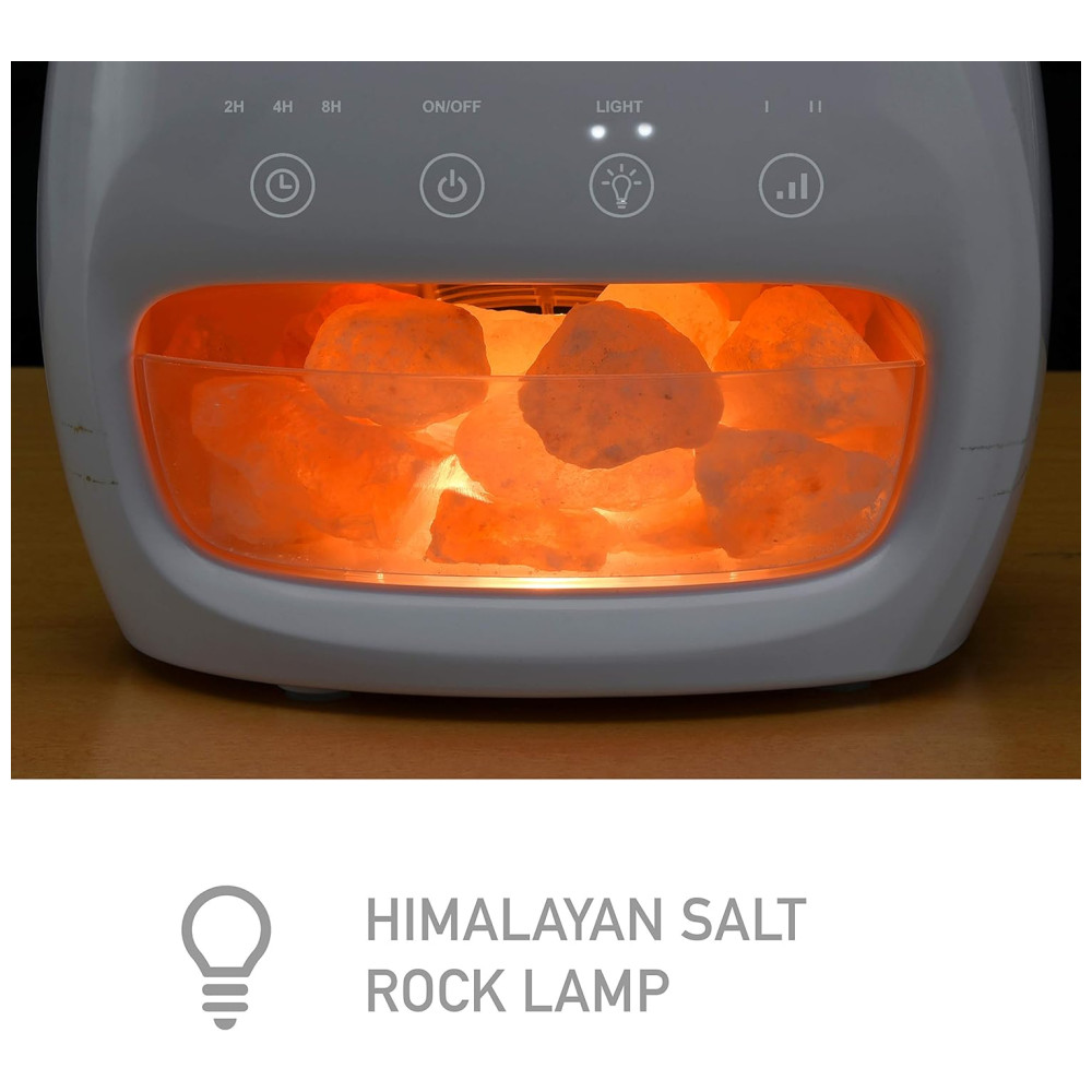 DESIGN 3 EM 1 Inclui lâmpada de sal do Himalaia, umidificador ultrassônico e bandeja de aromaterapia com óleo essencial CAPACIDADE DO TANQUE Possui um tanque de 1,2 litros, o design compacto da mesa permite fácil transporte uma atmosfera relaxante adicionando algumas gotas de óleo de aromaterapia na bandeja PRATA PROTEÇÃO DE LIMPEZA Combate o crescimento de mofo e bolor na superfície do tanque de água FÁCIL DE USAR Possui uma névoa fria, 2 configurações de velocidade, uma luz noturna, uma bandeja de aromaterapia, e um temporizador de desligamento automático de 8 horas