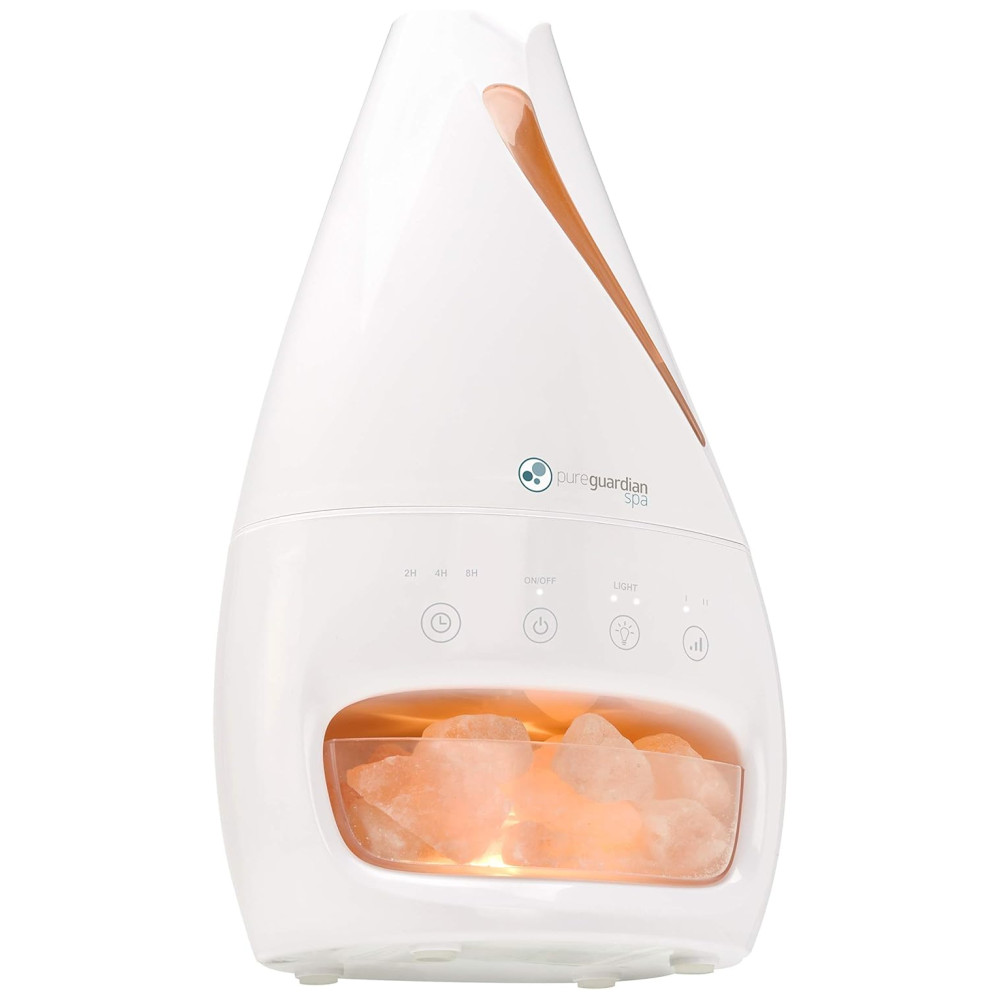 A combinação terapêutica da lâmpada de sal do Himalaia e do umidificador ultrassônico com bandeja de aromaterapia foi projetada para criar uma atmosfera calmante e relaxante, ao mesmo tempo em que oferece todos os benefícios de um umidificador tradicional. Esta lâmpada de sal 3 em 1 pode operar todas as suas funções de forma independente ou simultânea. A lâmpada de rocha de sal do Himalaia cria muitos benefícios de elevação do humor, exibindo uma luz ambiente suave brilhando através de cristais exclusivos do Himalaia criados naturalmente. O umidificador ultrassônico proporciona alívio seco ao dispersar a umidade no ar, e a bandeja de aromaterapia libera a fragrância de sua escolha de nossos óleos essenciais em seu espaço. Facilmente portátil, esta elegante lâmpada de sal foi projetada para proporcionar uma atmosfera relaxante em qualquer lugar. Pode ser usada em quartos, quartos de bebês, salas de estar, áreas de meditação, salas de aula, spas, escritórios e muito mais. É o presente perfeito para todas as gerações