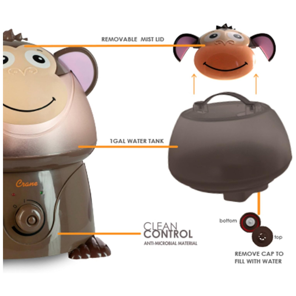 Umidificador Ultrassônico 37L com Tema de Macaco Configurações Ajustáveis e Desligamento Automático para Ambientes até 46m2 110V CRANE Marrom