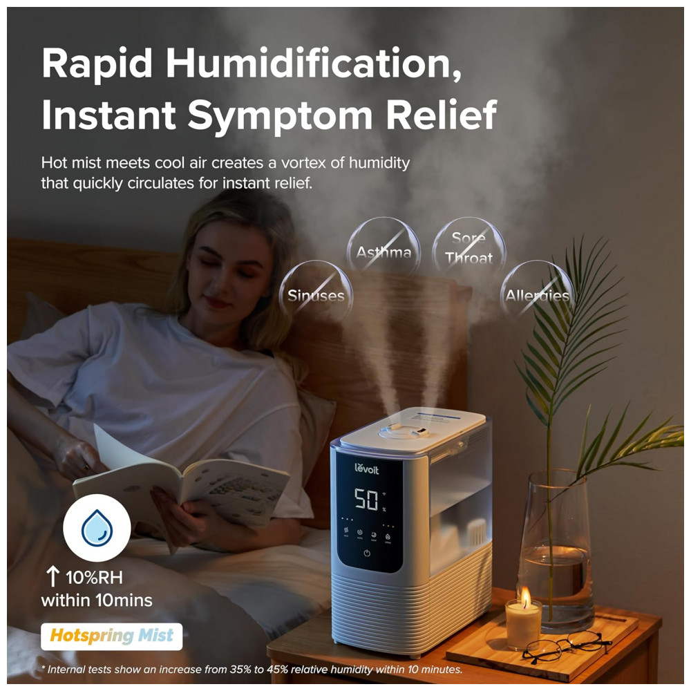 Névoa mais saudável e confiável execute seu umidificador quente e frio por até 45 horas com baixa névoa fria. A saída de névoa pode ser de até 550mL, h e a capacidade do tanque de 4,5 L também o torna perfeito para quartos e salas grandes.