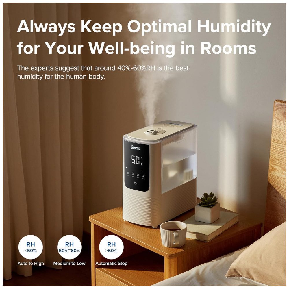 Umidificador Ultrassônico 4.5L com Display LED e Silencioso LEVOIT Branco