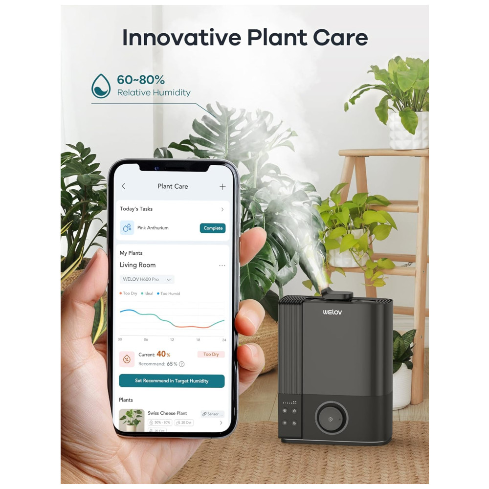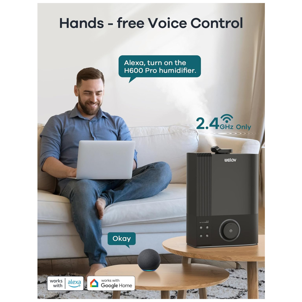 Umidificador Ultrassônico 6L com Enchimento Superior Difusor de Óleo Essencial e Controle por APP e Voz para Ambientes até 46m² 110V Welov Cinza Escuro