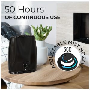 Cobertura de longa duração para sua casa, escritório, berçário ou dormitório nosso umidificador ultrassônico tem um tanque de 6 litros 1,6 galão que funciona em salas de até 46 Metros aos quadrados e dura até 50 horas.