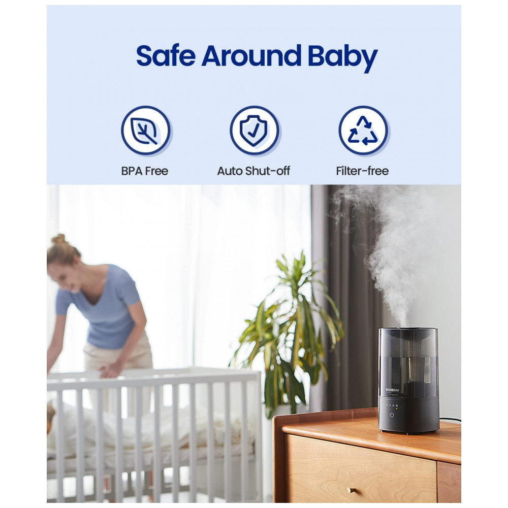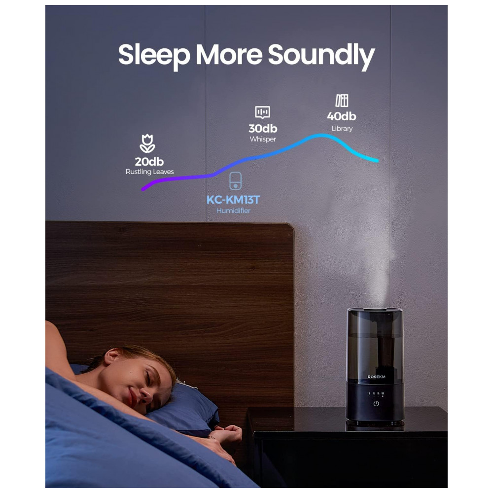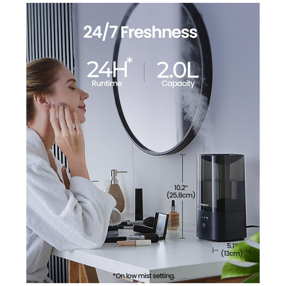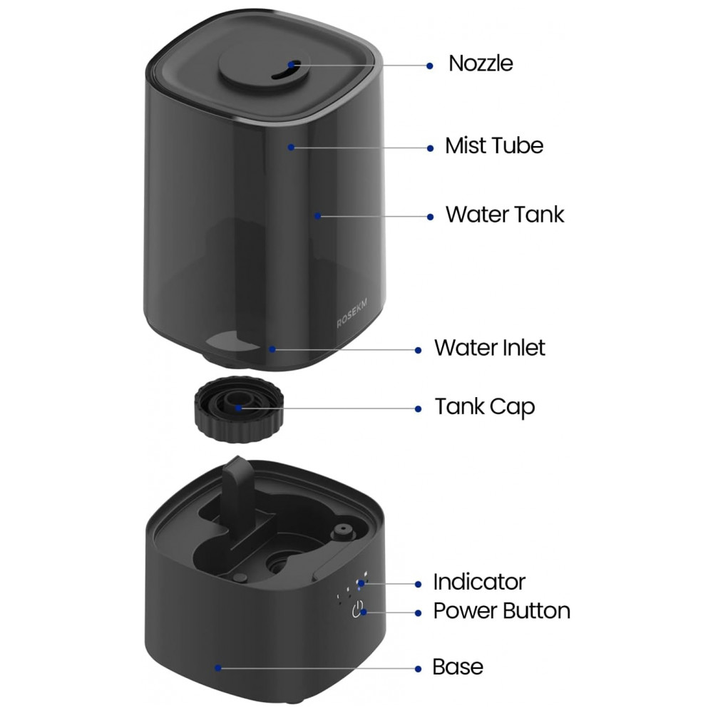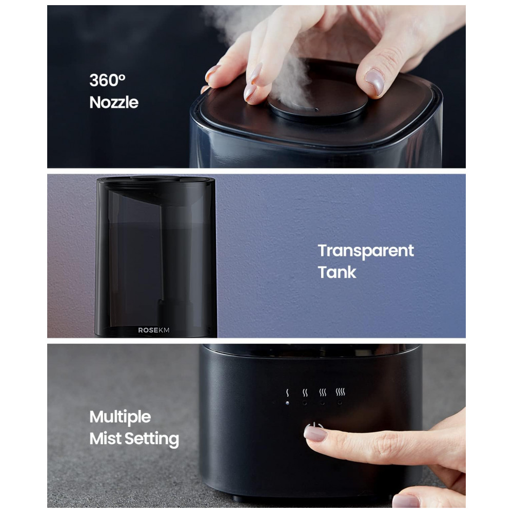 Umidificador Ultrassônico para Quarto 2L com bico 360 e Desligamento Automático Rosekm Preto