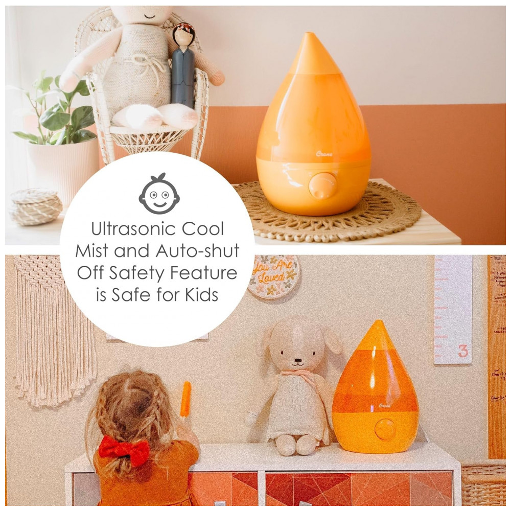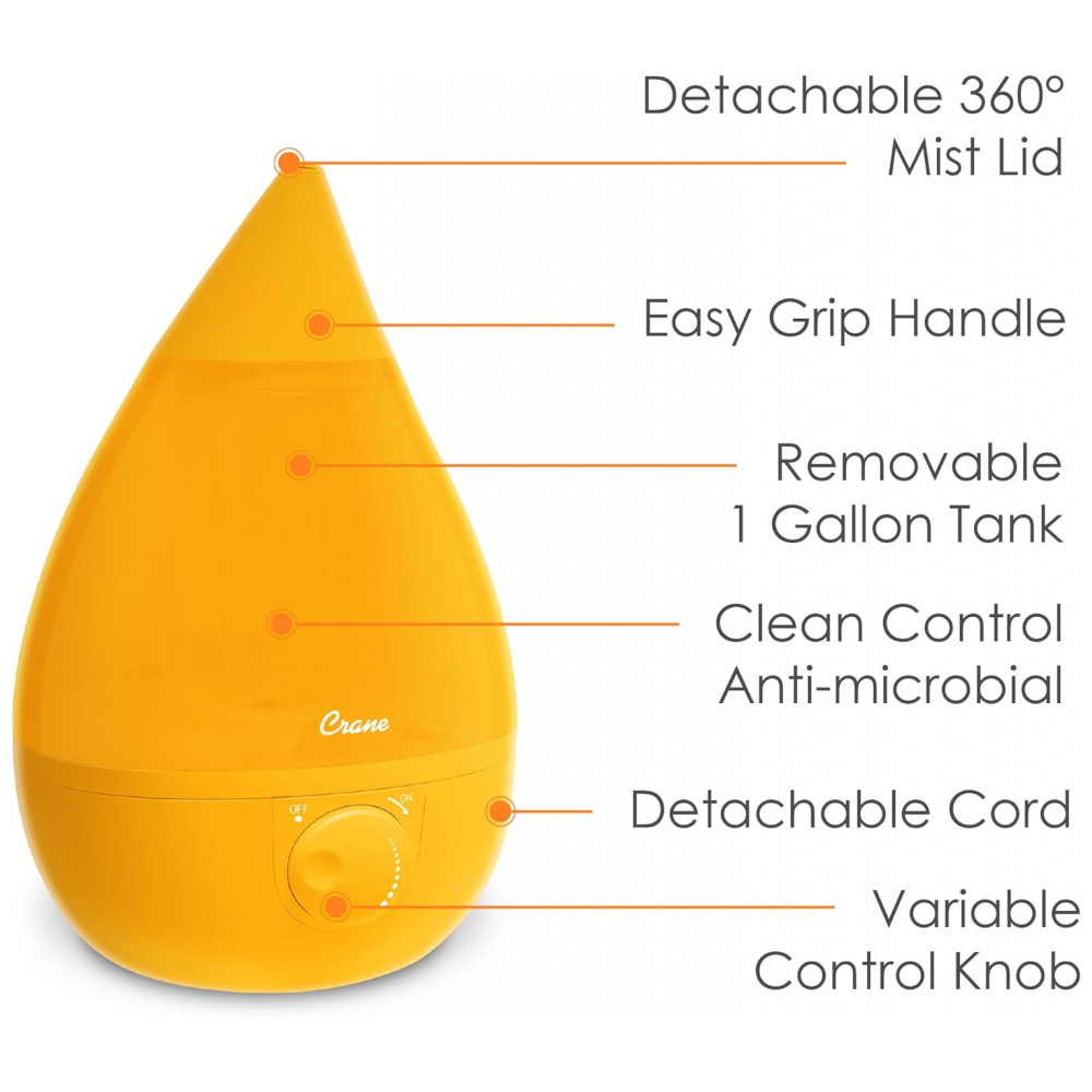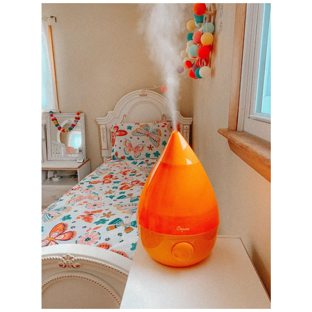 O umidificador de névoa fria em forma de gota icônica da Crane é a melhor solução para alívio natural de sintomas cas por ar seco, alergias ou resfriado e gripe especialmente para famílias ocupadas. Com seu grande tanque portátil de 1 galão e material de controle limpo, a limpeza é tão simples Sem mencionar que sua saída de névoa funciona por mais de 24 horas em uma sala de grande porte, tornando a uma adição funcional e estética a qualquer sala. Adicionar umidade ao ar é uma maneira natural e eficaz de ajudar você e sua família a respirar melhor e evitar doenças