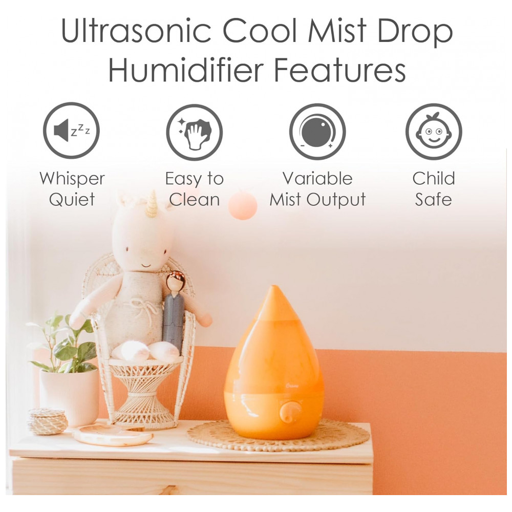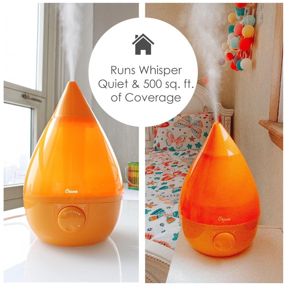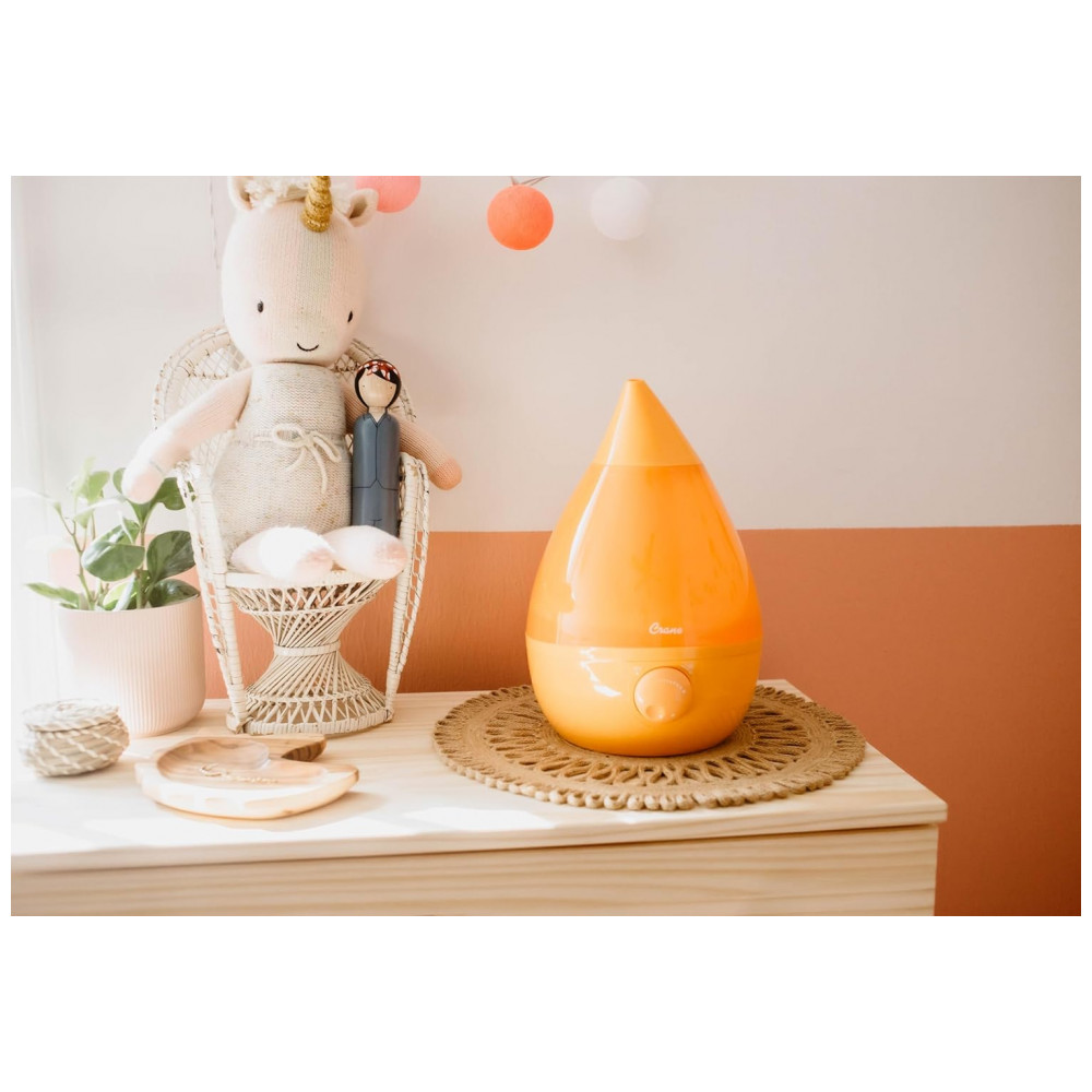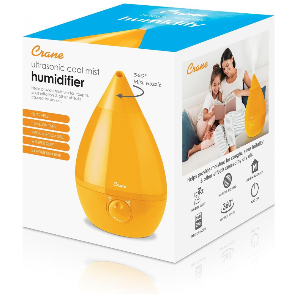 O umidificador de névoa fria em forma de gota icônica da Crane é a melhor solução para alívio natural de sintomas cas por ar seco, alergias ou resfriado e gripe especialmente para famílias ocupadas. Com seu grande tanque portátil de 1 galão e material de controle limpo, a limpeza é tão simples Sem mencionar que sua saída de névoa funciona por mais de 24 horas em uma sala de grande porte, tornando a uma adição funcional e estética a qualquer sala. Adicionar umidade ao ar é uma maneira natural e eficaz de ajudar você e sua família a respirar melhor e evitar doenças