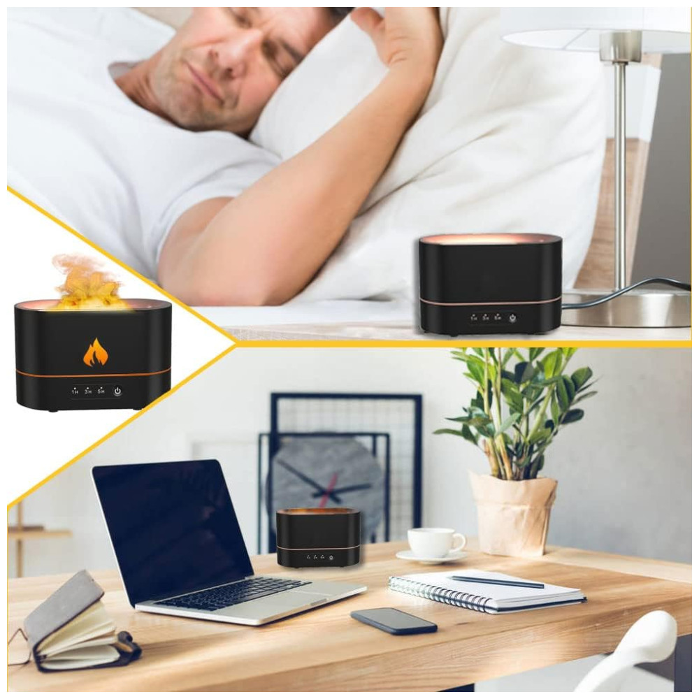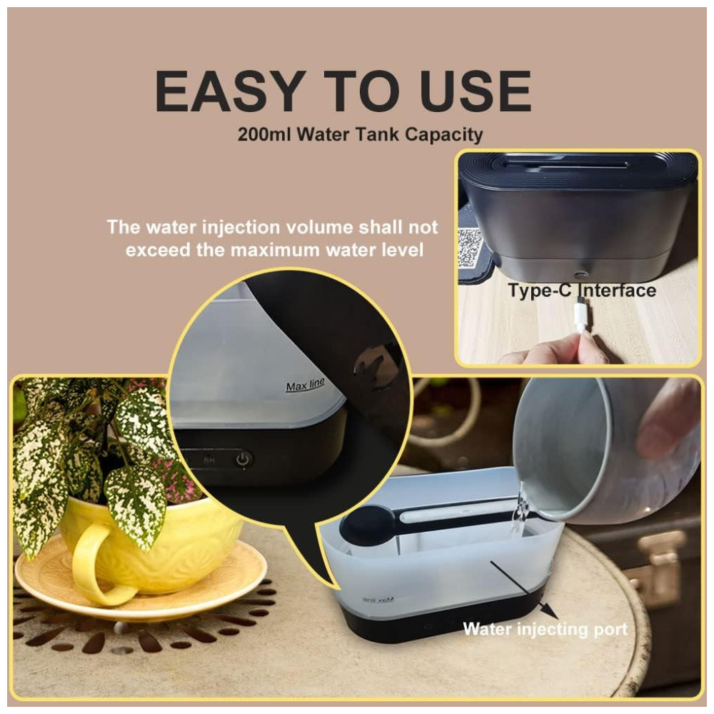 Aparência Ideal O produto inclui cabo tipo c, USB de 1 m. O tamanho adequado para quarto em casa ou escritório. Três tipos de luzes ajustáveis criam três tipos de chamas simuladas, aumentam a umidade e criam uma boa atmosfera.