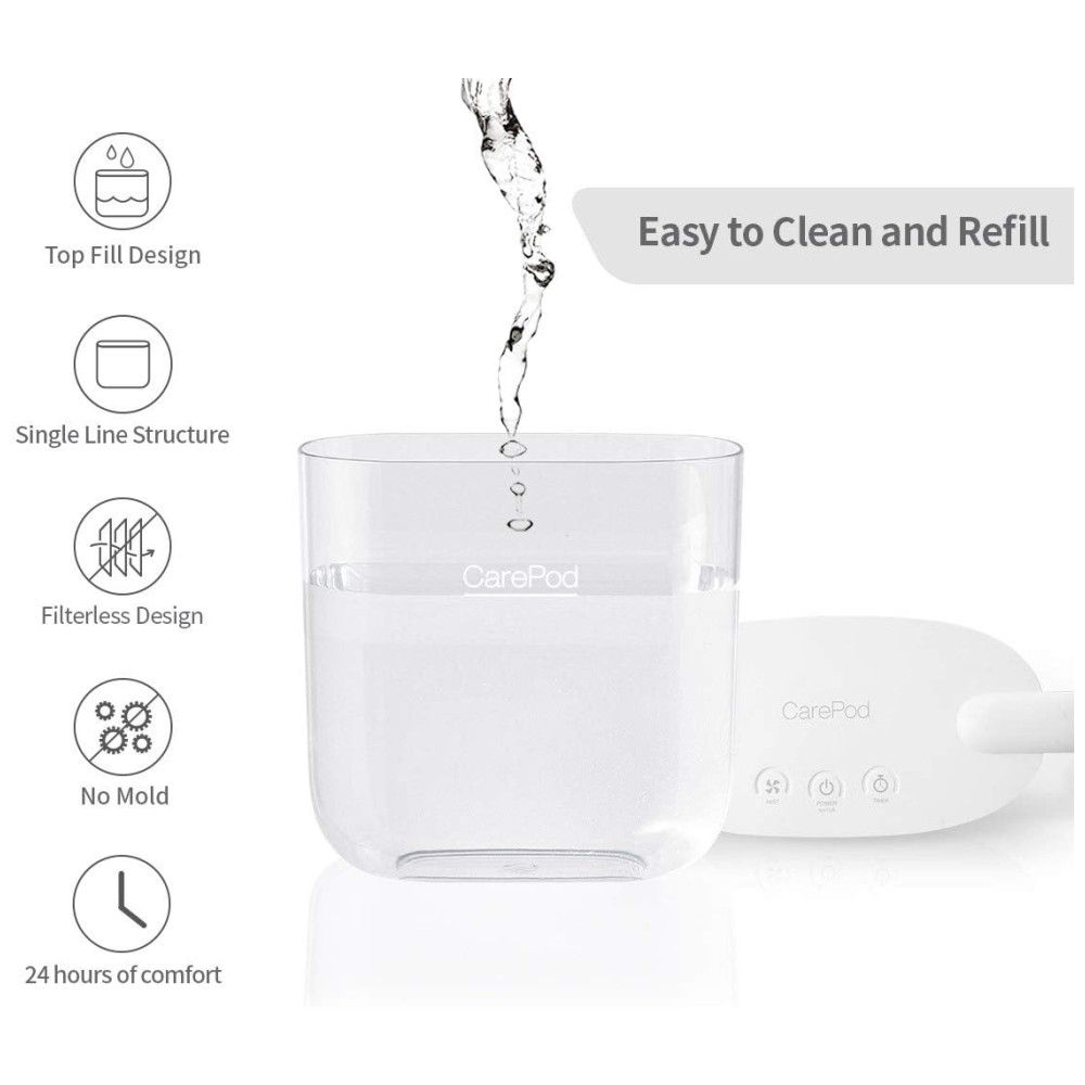 Conteúdo da caixa: Umidificador Carepod Mini, cabo de energia, manual do usuário