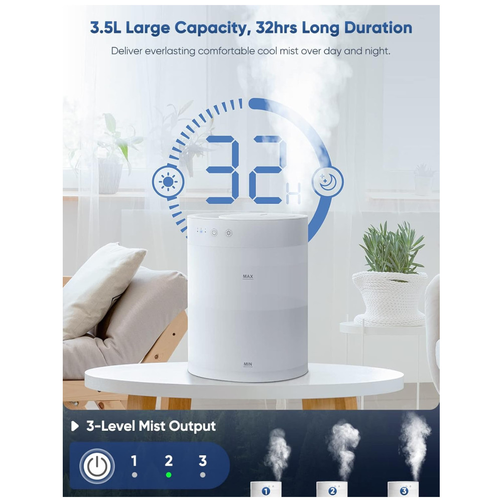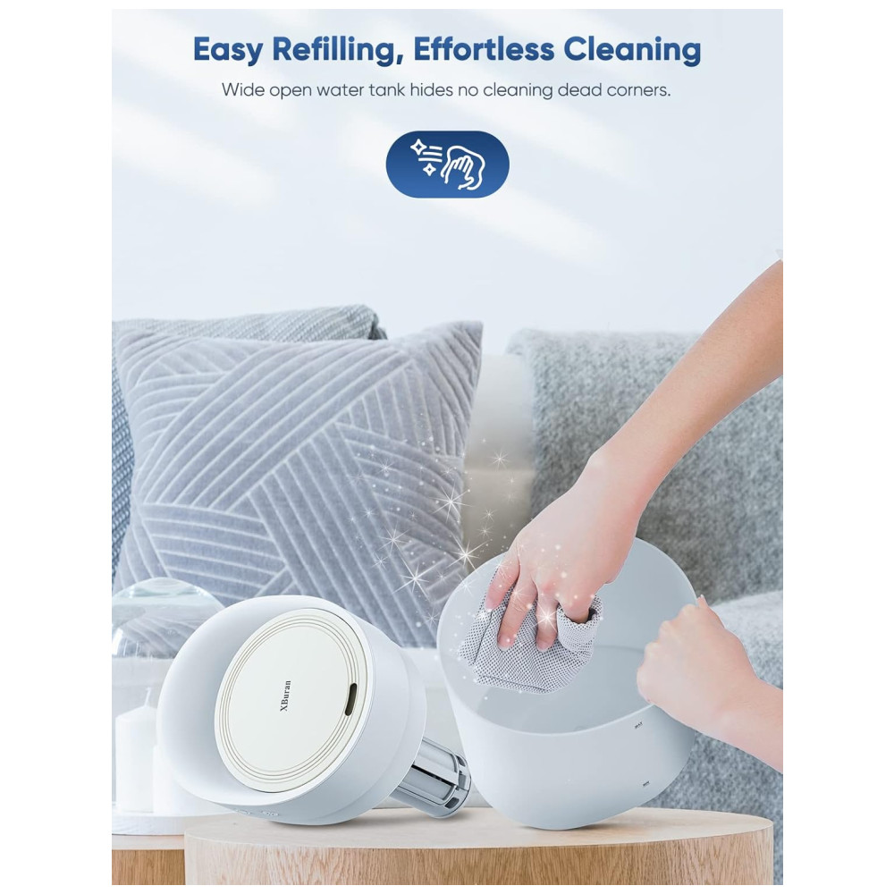 Capacidade extra grande, enchimento super rápido O tanque de água destacável independente torna conveniente adicionar água diretamente sob a torneira. Não é mais cansativo transportar água com outros recipientes. Encha o tanque em 30 segundos e aproveite a névoa fria de conforto de longa duração por 32 horas.