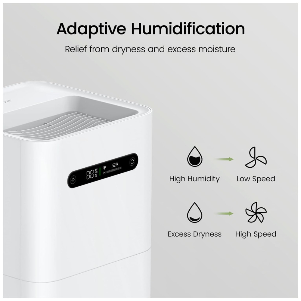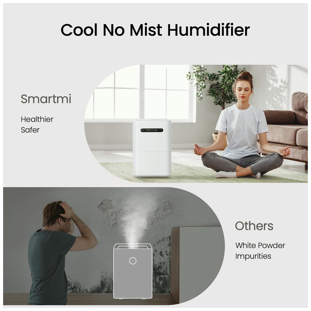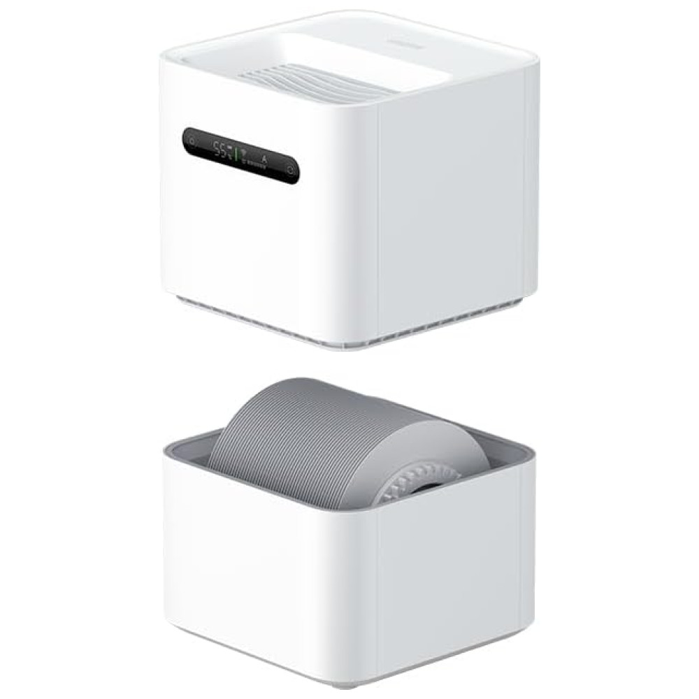 Cool No Mist o umidificador Smartmi Cool No Mist usa o princípio de umidificação evaporativa para adicionar umidade ao ar seco e facilitar a respiração. Ao contrário dos umidificadores de névoa ultrassônica, o design sem névoa evita que a água se acumule perto do umidificador, o que pode danificar móveis de madeira e papel de parede. Também evita que a umidade se combine com poeira e contaminantes e mantém a boa qualidade do ar.