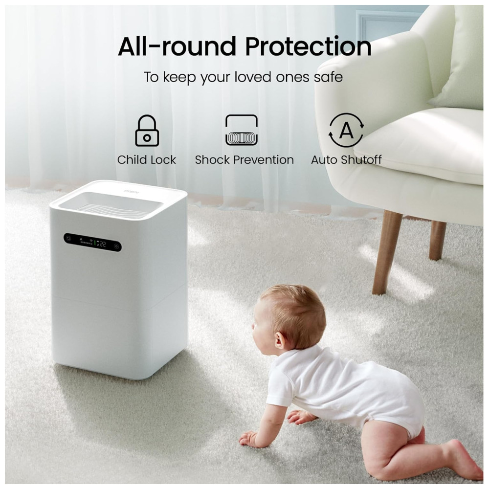 Modo de autolimpeza elimina o incômodo de limpar seu umidificador. Nossos umidificadores evaporativos para quarto possuem um modo de autolimpeza que remove manchas e odores de água. O modo de secagem ao ar permite que o umidificador evaporativo funcione por até 8 horas quando o nível de água estiver abaixo de 10 e seca a água restante para evitar o acúmulo de poluentes e odores.