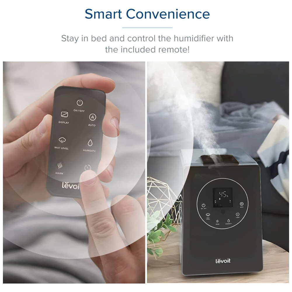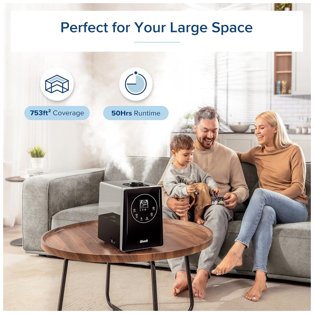 PERFEITO PARA QUARTOS GRANDES Com uma saída de névoa de até 500 mL, h, o LV600HH pode lidar facilmente com espaços de até 753 pés , 70 m. O grande tanque de 6 litros permite umidificar continuamente por até 60 horas, evitando o problema de recargas frequentes