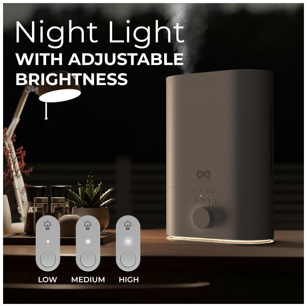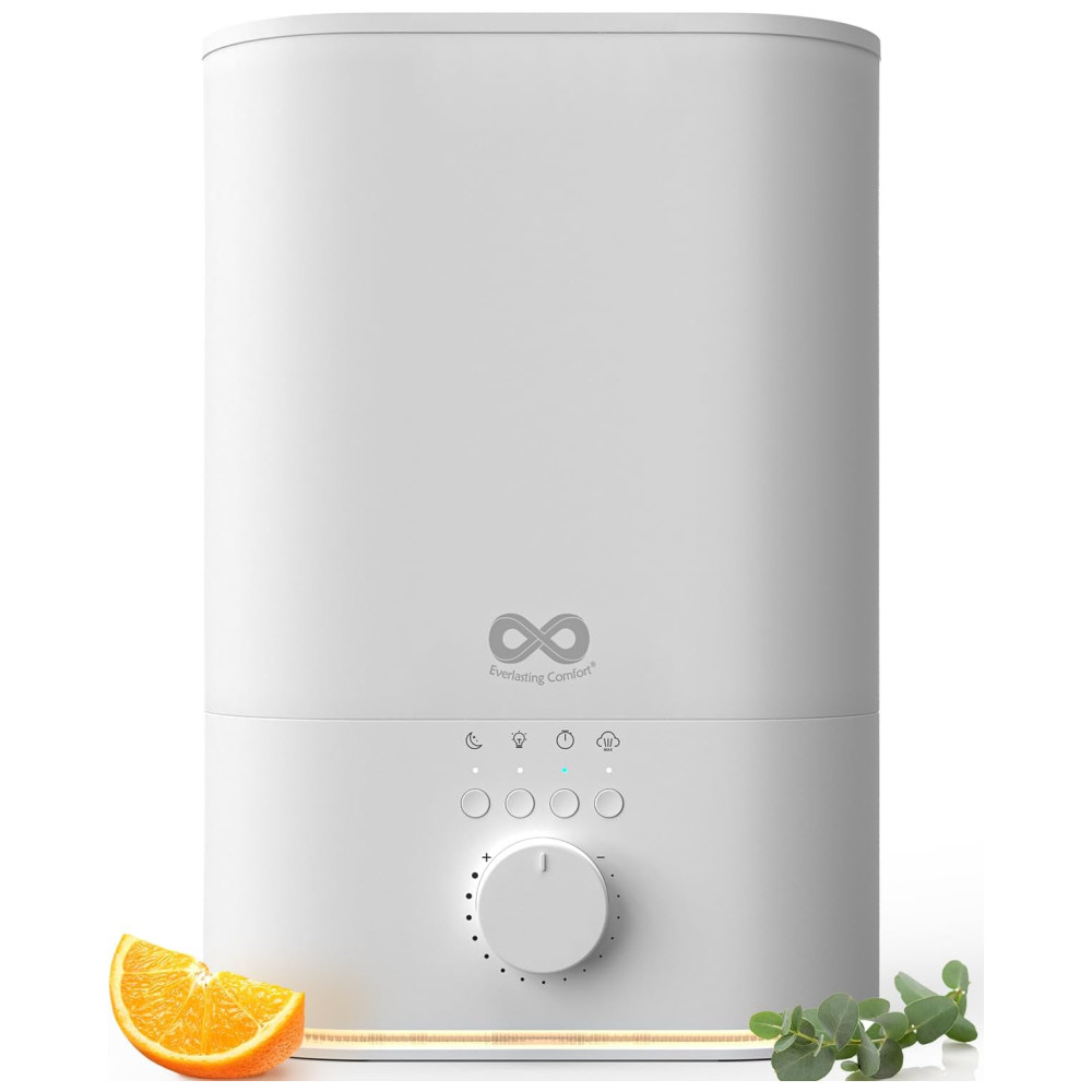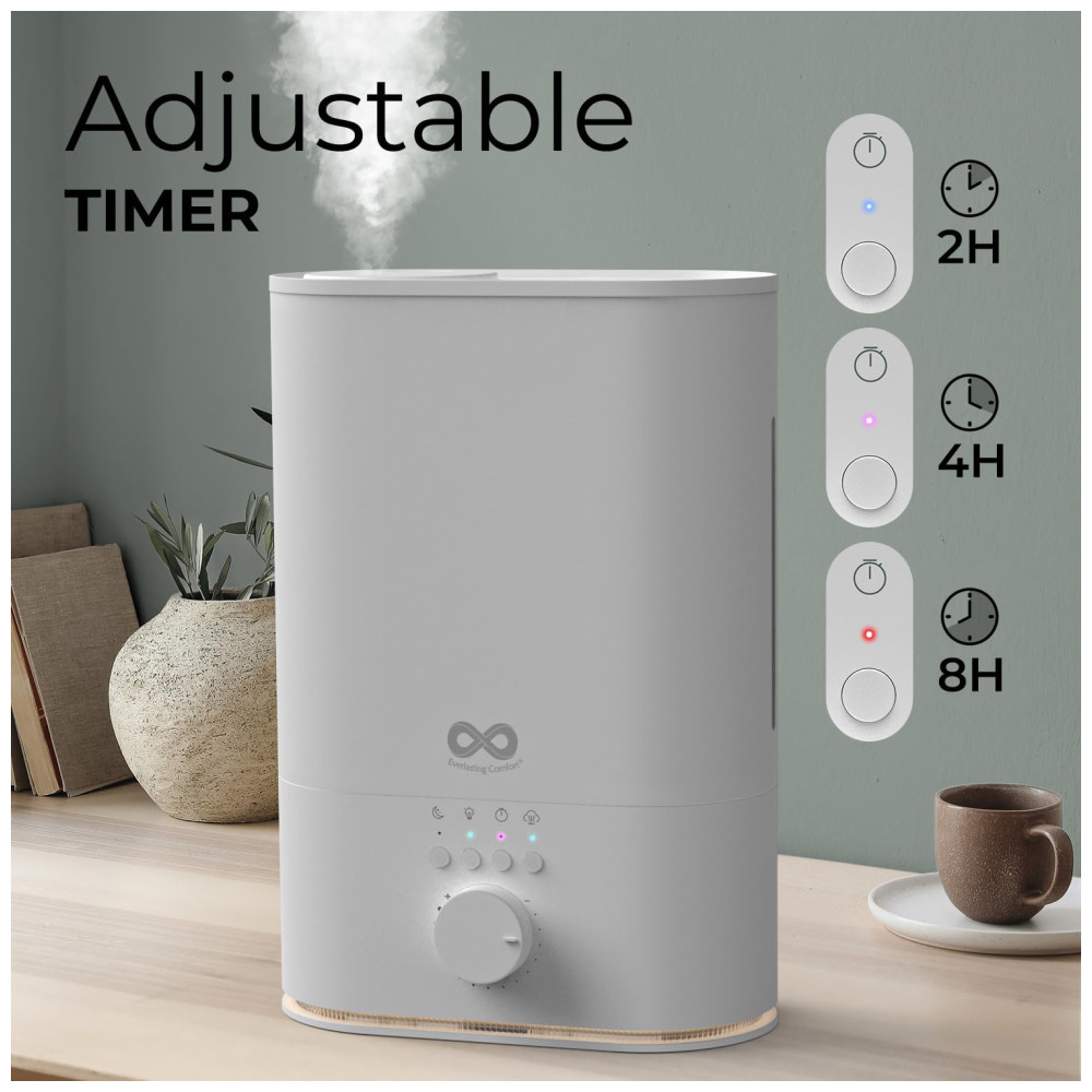 Transforme o ambiente da sua casa com este versátil umidificador projetado para trazer conforto, relaxamento e facilidade para qualquer espaço. Projetado para uma umidificação poderosa, ele apresenta uma Função de Jato de Reforço que oferece uma saída de névoa alta de 500ml/h na primeira hora, elevando rapidamente os níveis de umidade para combater o ar seco e fornecer alívio imediato. Esta característica é ideal para aqueles que buscam uma umidificação rápida em ambientes maiores ou durante condições particularmente secas. Personalize seu conforto facilmente com níveis ajustáveis de névoa por meio de controles mecânicos simples, permitindo que você ajuste a umidade para se adequar a diferentes ambientes, necessidades pessoais ou mudanças sazonais. A adição de múltiplas opções de temporizador de 2, 4 e 8 horas fornece agendamento flexível, garantindo que o umidificador funcione apenas quando você precisa, ajudando a economizar energia sem sacrificar a névoa refrescante e constante. Projetado pensando no sono tranquilo, o Modo de Sono deste umidificador reduz automaticamente a saída de névoa para suaves 180ml/h e desliga todas as luzes, criando um ambiente ideal para noites tranquilas e ininterruptas. Seja utilizado em um quarto, berçário ou qualquer espaço de relaxamento, sua operação silenciosa garante uma atmosfera pacífica, ideal para pessoas com sono sensível. Aprimore sua experiência ainda mais com a luz noturna embutida e a função de aromaterapia. Escolha entre três níveis de brilho para um suave e calmante brilho ou adicione óleos essenciais diretamente no reservatório de água para preencher o ambiente com aromas relaxantes. O reservatório de água transparente oferece um nível de água visível, facilitando a monitoração e o reabastecimento sem adivinhações. Este umidificador oferece uma combinação de desempenho poderoso, facilidade de uso e recursos focados no cliente para a sua casa, tornando-o a solução definitiva para um ambiente indoor confortável e saudável. Experimente a conveniência da manutenção fácil com o reservatório de água fino e grande de nossos umidificadores, simples de limpar e manter. Este design de umidificador e purificador de ar em um não apenas promove um uso eficiente, mas também significa menos recargas frequentes. A segurança é uma prioridade com o recurso de desligamento automático que é ativado quando o nível da água está baixo. O motor ajustável e o bico de 360 graus garantem que você obtenha uma distribuição ideal de névoa, proporcionando conforto duradouro com uma autonomia de 8 a 60 horas. Se você deseja melhorar a qualidade do ar ou aliviar a congestão, o umidificador vaporizador Everlasting Comfort é a solução ideal para a sua casa. Função de Jato de Reforço Poderosa Aumente instantaneamente a umidade com uma saída de névoa alta de 500ml/h na primeira hora, depois mude para a saída regular para conforto contínuo – ideal para alívio rápido do ar seco. Conforto Personalizável com Controle Manual Ajuste os níveis de névoa conforme sua preferência usando controles mecânicos simples, tornando fácil adaptar a umidade para diferentes tamanhos de ambientes e necessidades. Opções de Temporizador para Economia de Energia Configure o umidificador para funcionar por 2, 4 ou 8 horas, economizando energia enquanto fornece umidade consistente ao longo do dia ou da noite. Modo de Sono para Noites Tranquilas Desfrute de um sono tranquilo enquanto o umidificador diminui suas luzes e reduz a saída de névoa para 180ml/h, criando um ambiente tranquilo e com baixo ruído ideal para quartos e berçários. Luz Noturna Embutida Aromaterapia Escolha entre três níveis de brilho da luz noturna ou adicione óleos essenciais diretamente no reservatório para criar uma atmosfera calmante e perfumada.