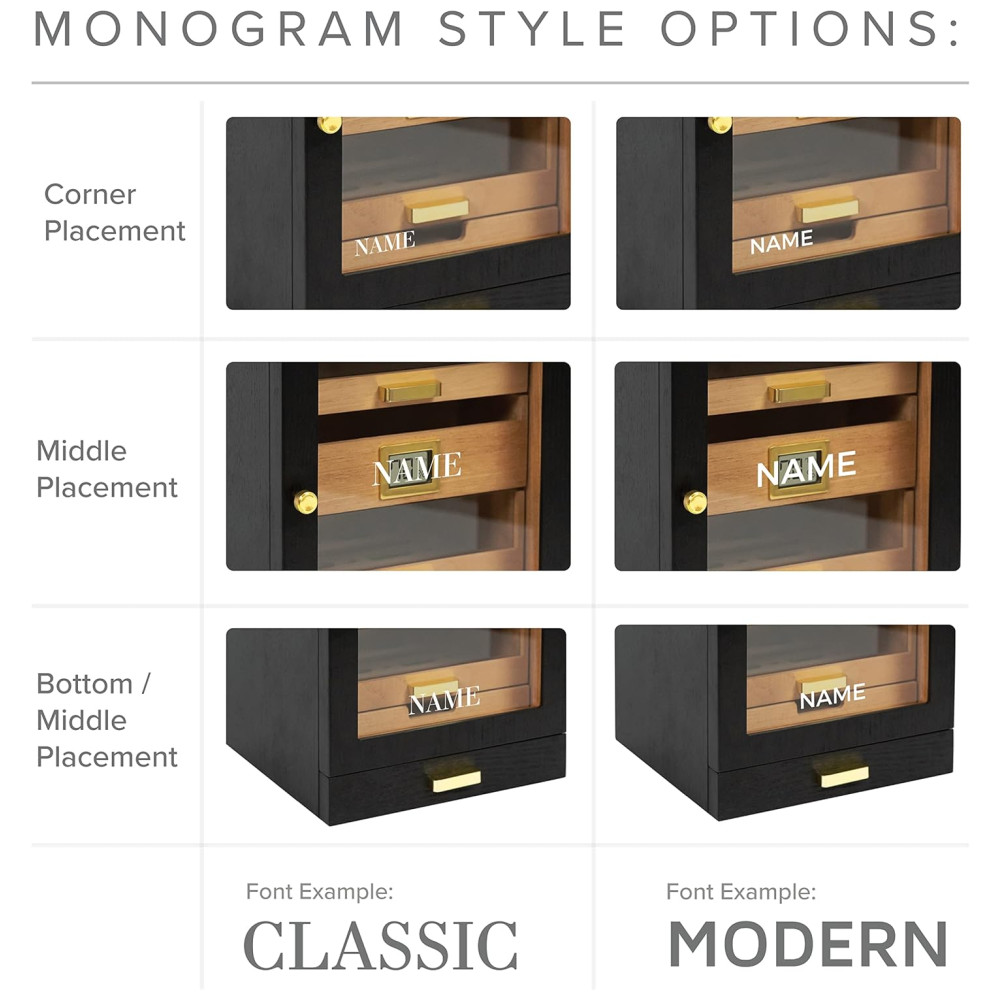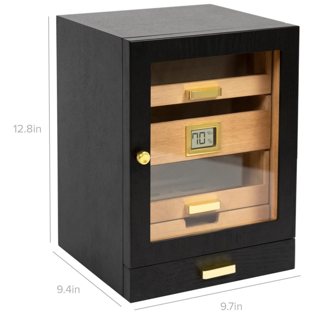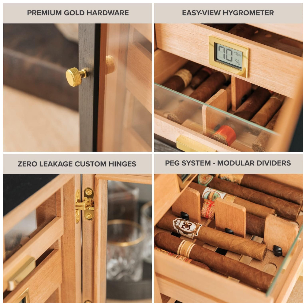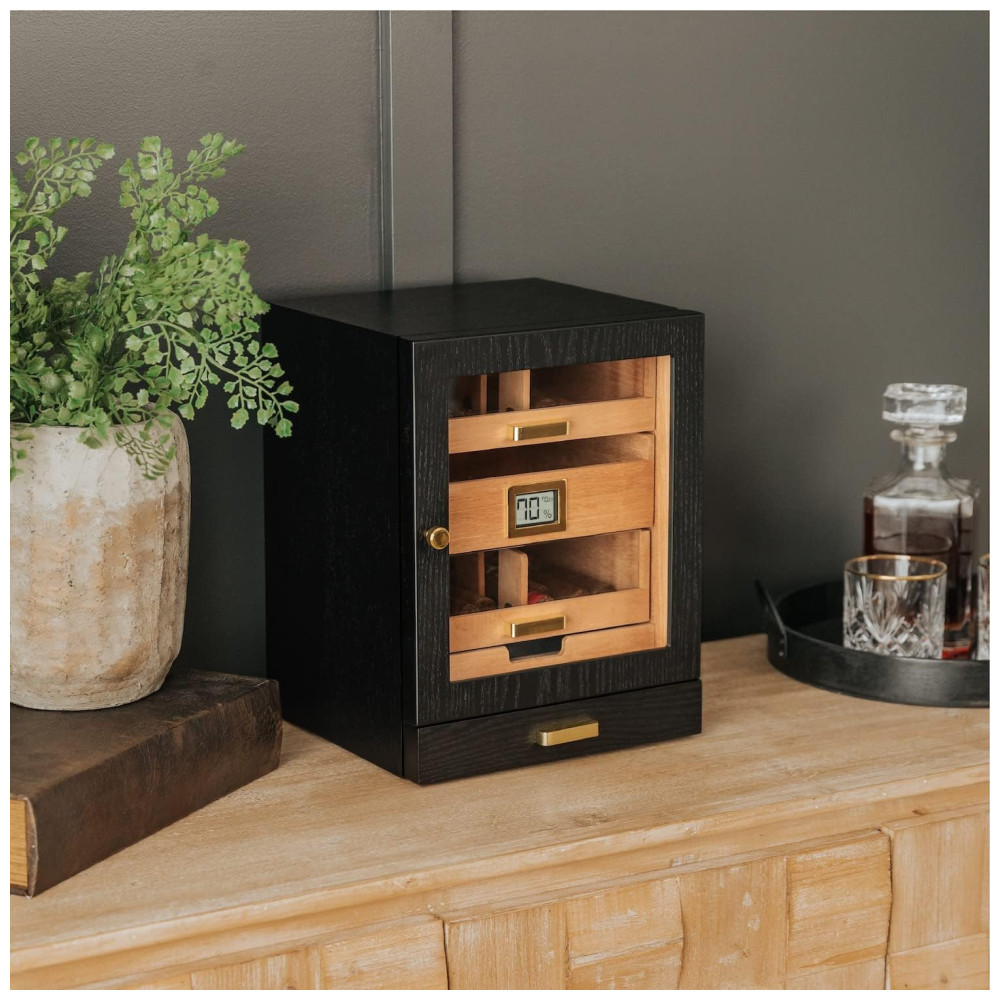 Umidor de Armário Luca com Cedro Espesso Sistema de Umidificação Fácil Higrômetro Digital Preciso PretoCASE ELEGANCE
