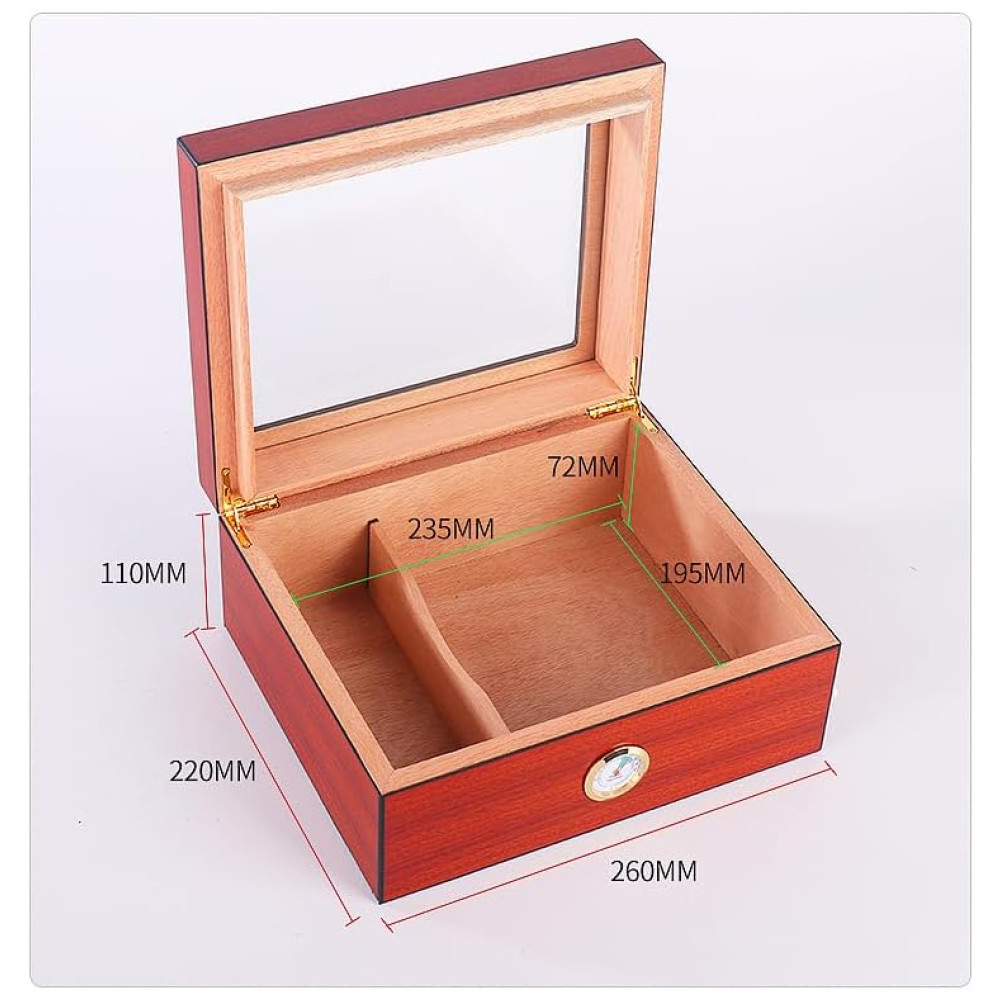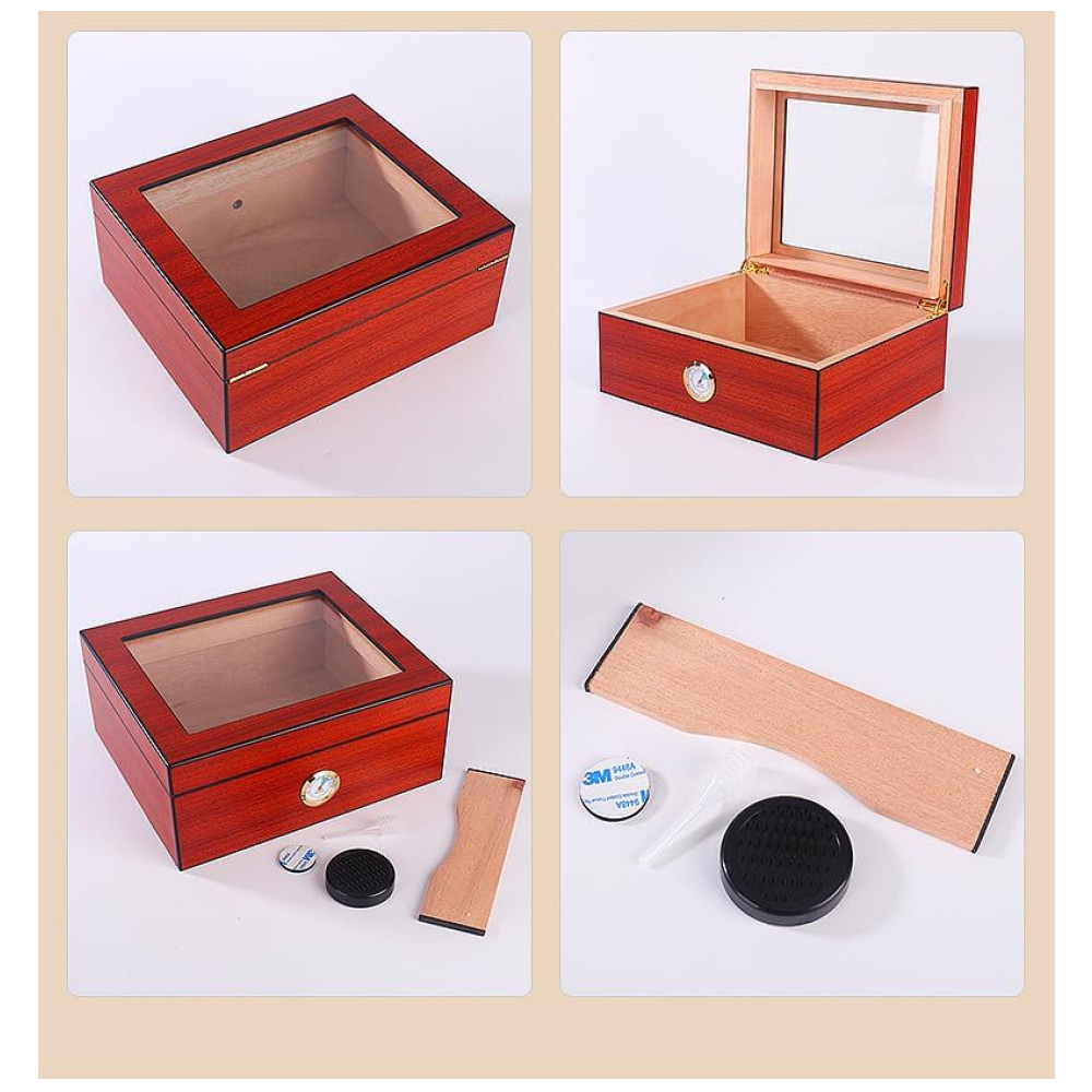 Umidor de Charuto Artesanal em Madeira de Shabelle com Umidificador e Higrômetro Tampa de Vidro e Capacidade para 20 CharutosNidivey