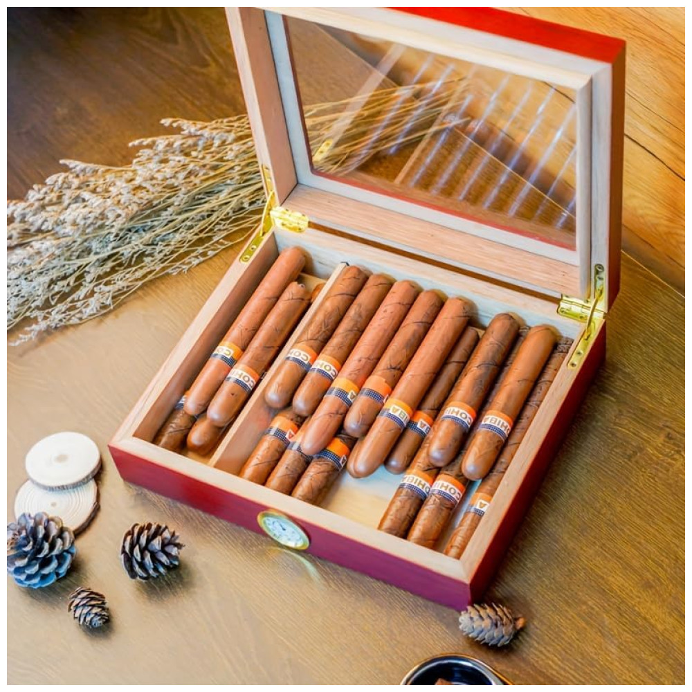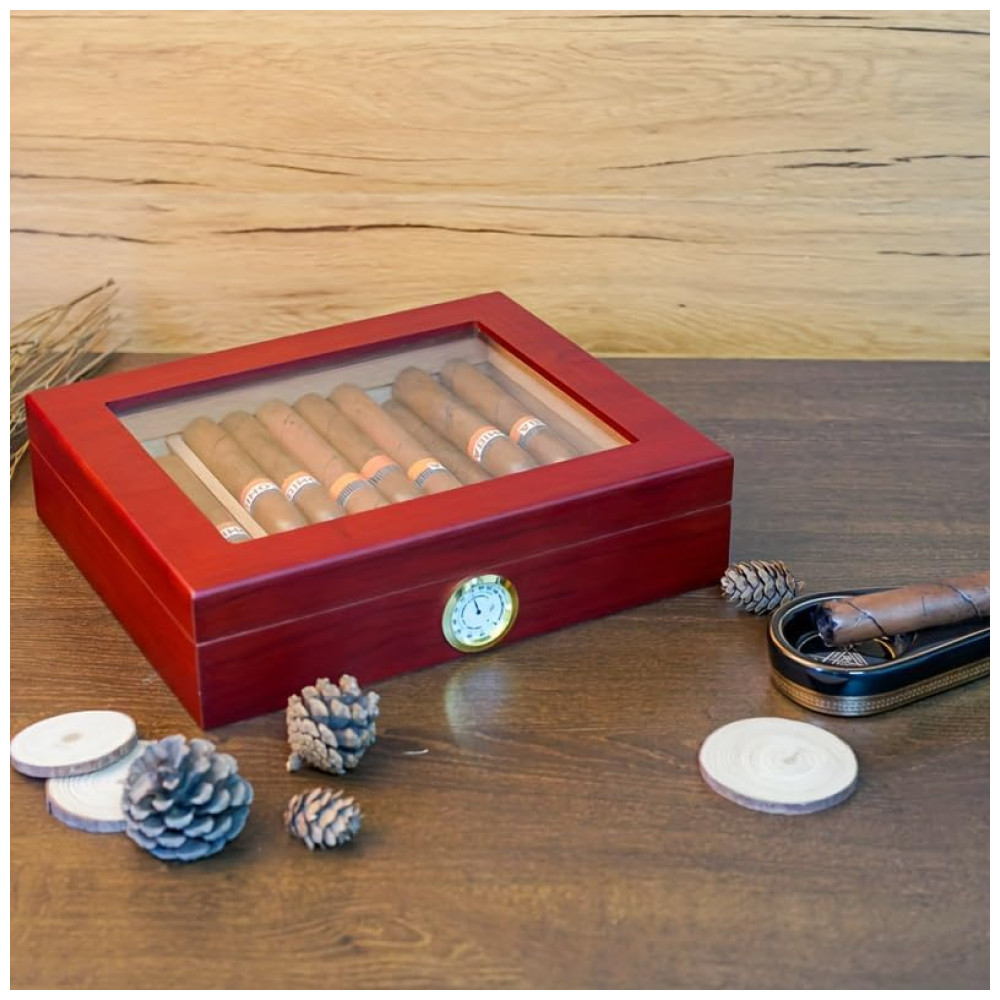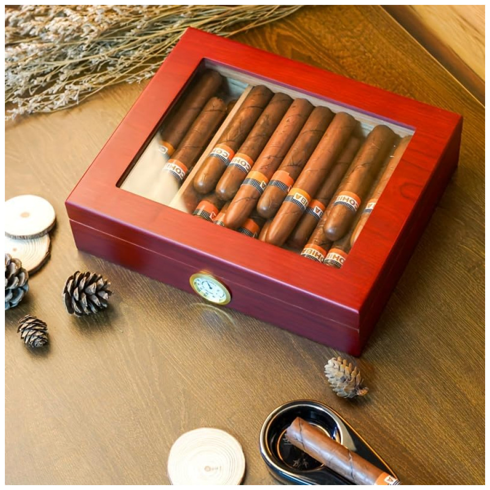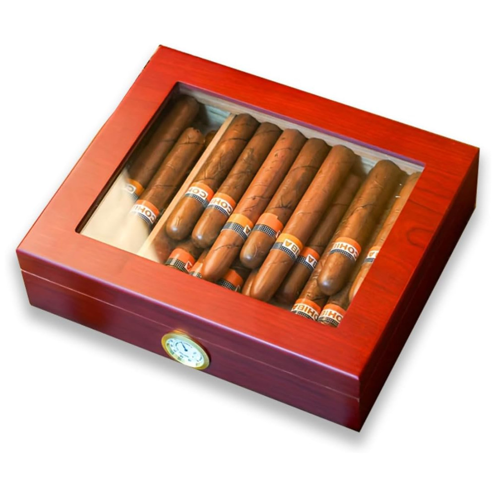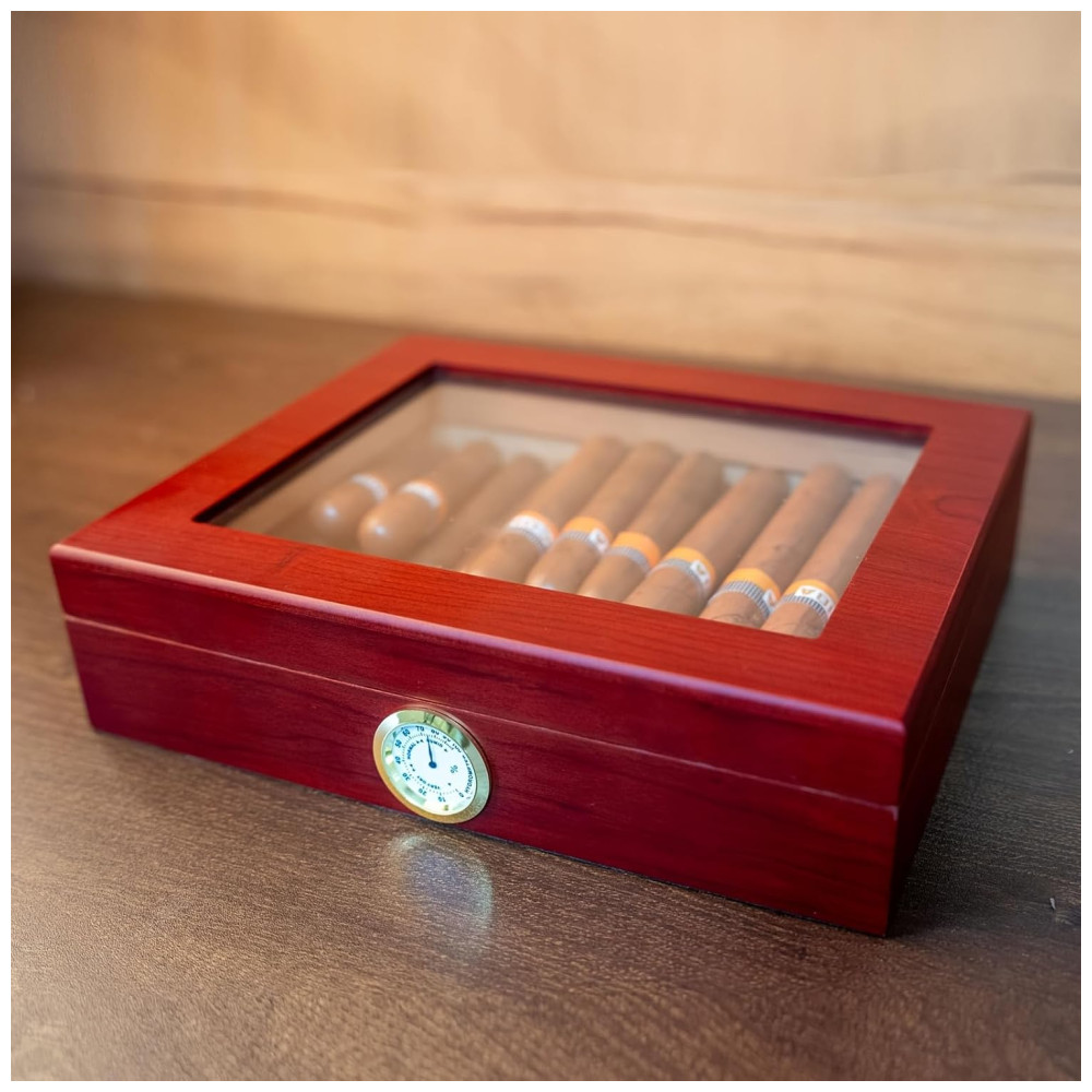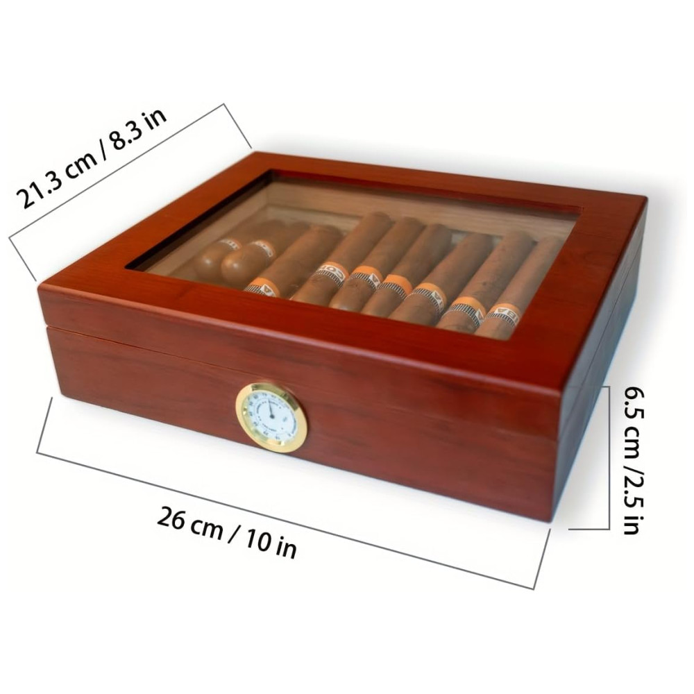 Umidor de Charutos Artesanal de Pau-Rosa com Forro de Cedro Espanhol Mesa Umidificador Higrômetro e Dispensador – Tampo de Madeira Nidivey