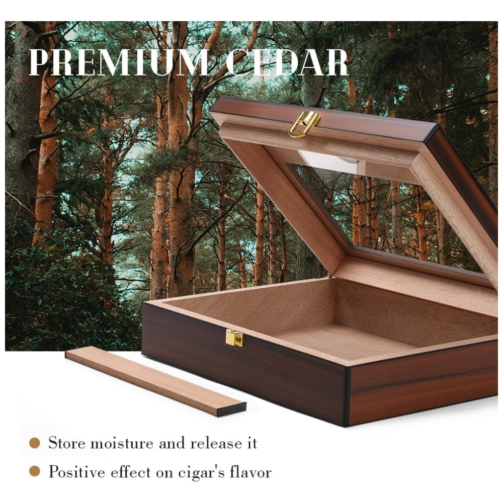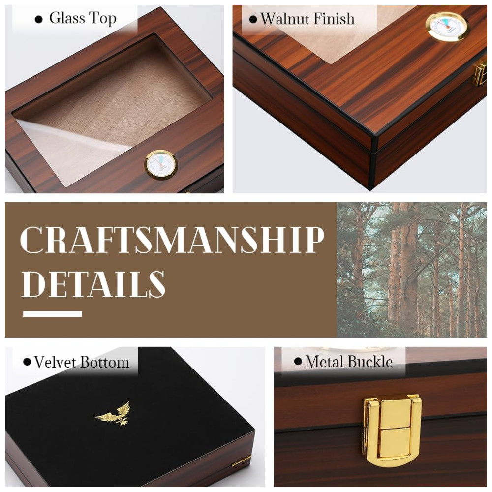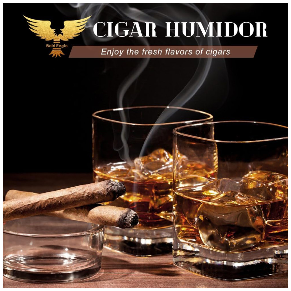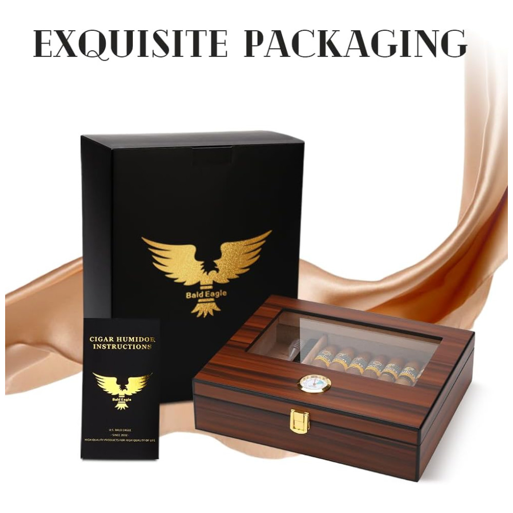 Umidor de Charutos Bald Eagle Caixa com Visor de Vidro Umidade Controlada com Higrômetro Estojo de Madeira de Cedro para 25-30 Charutos