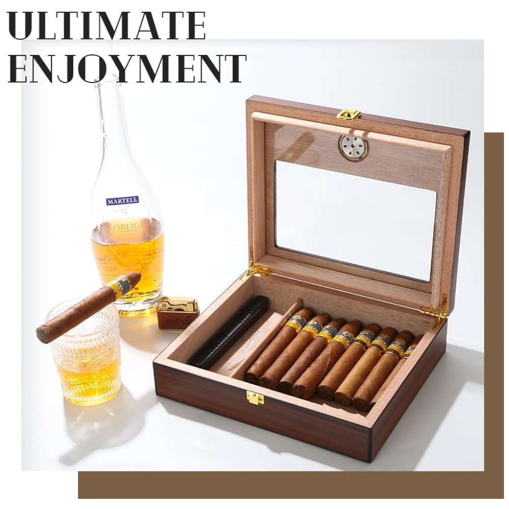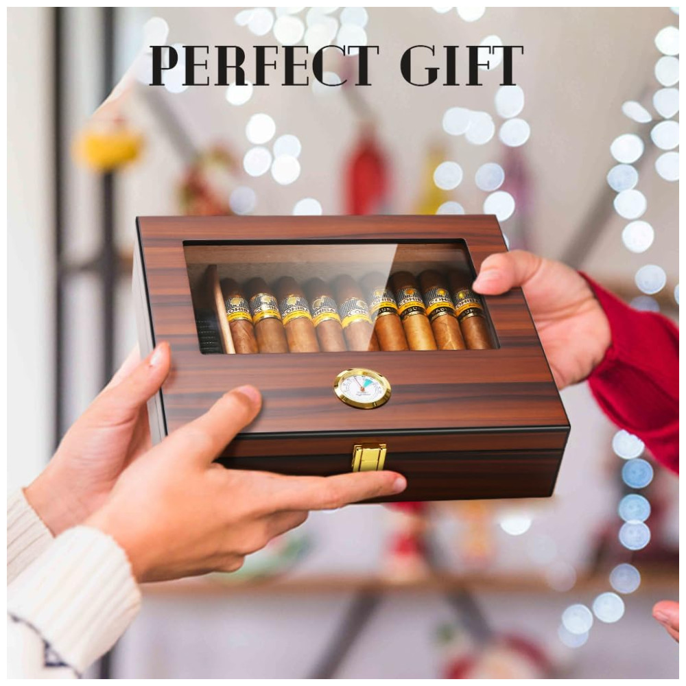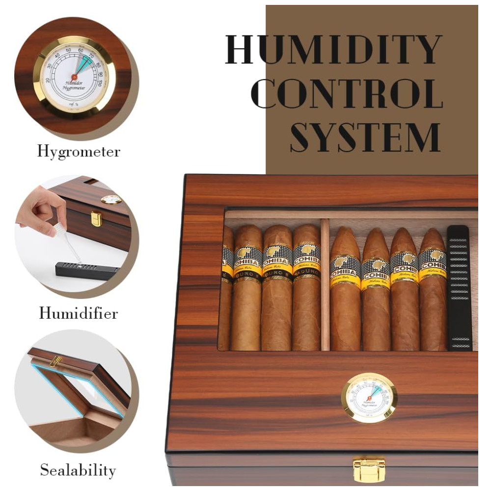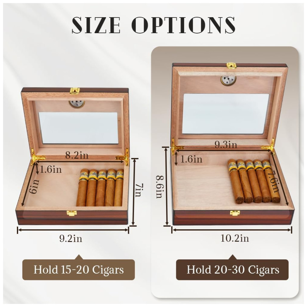 Umidor de Charutos Bald Eagle Caixa com Visor de Vidro Umidade Controlada com Higrômetro Estojo de Madeira de Cedro para 25-30 Charutos