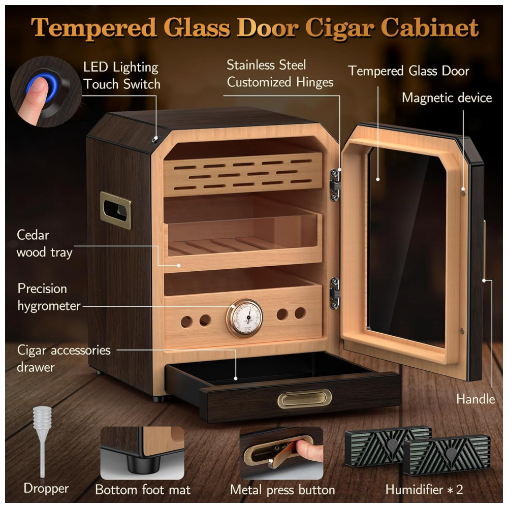 Armário umidor de Charutos com Porta Magnética e Iluminação LED: