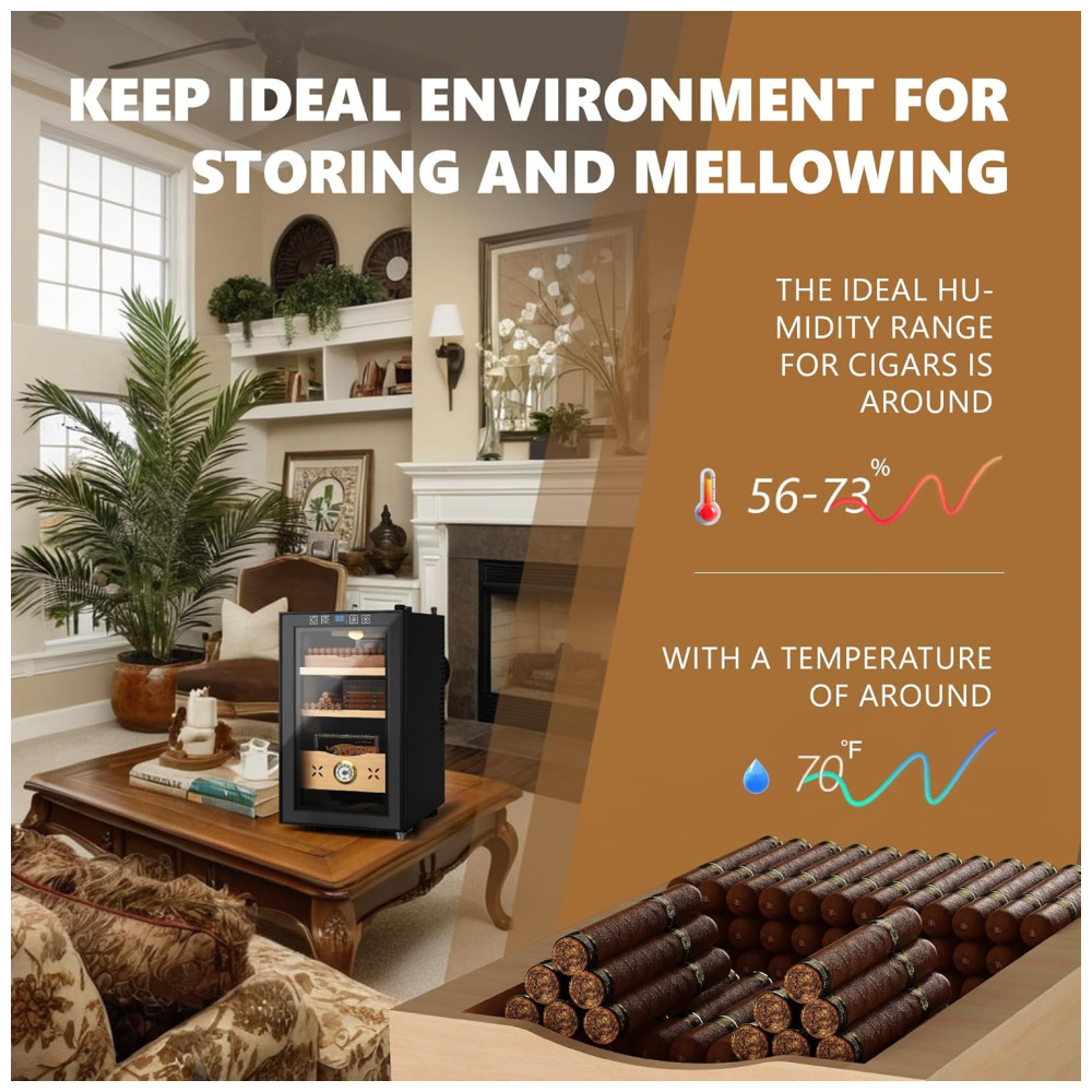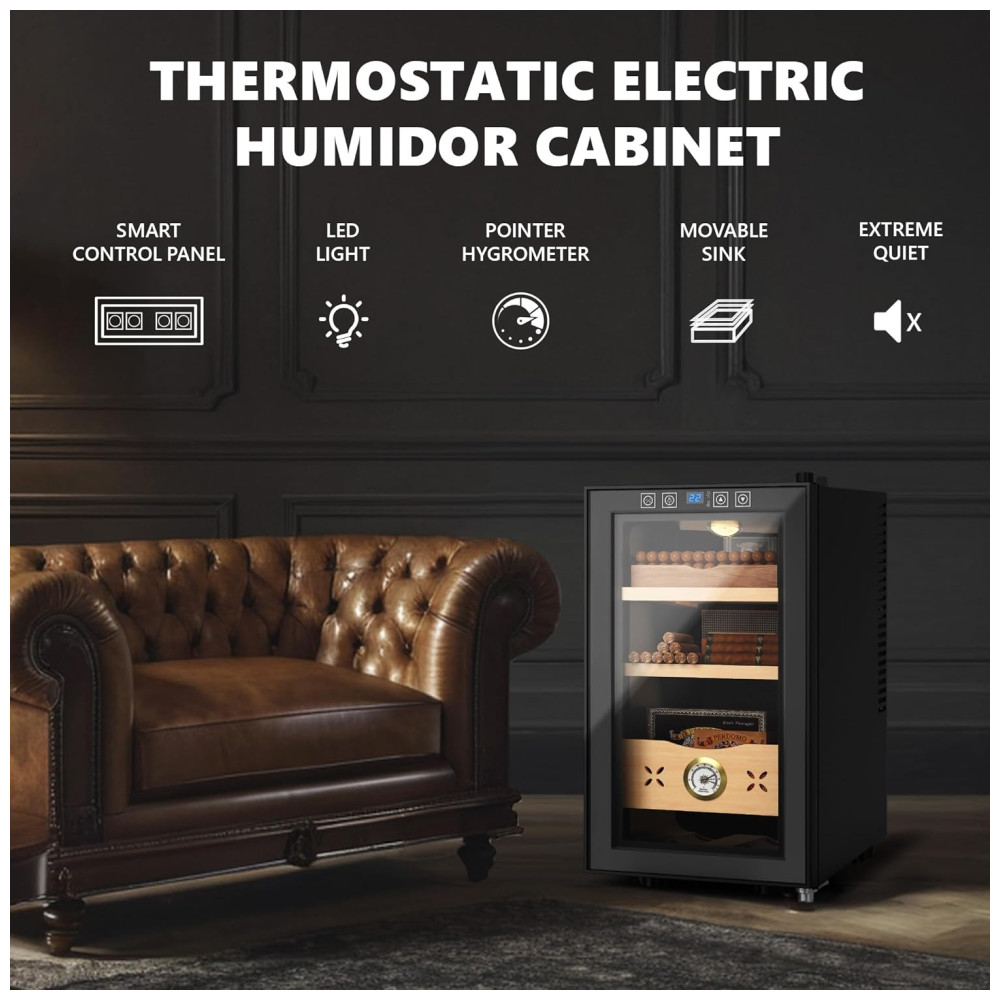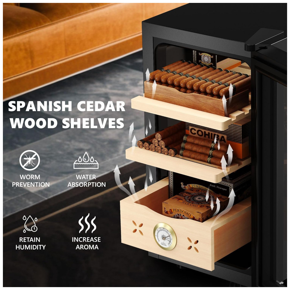 Umidor de Charutos Elétrico EUHOMY 25 Litros com Controle de Temperatura Armário de Cedro Espanhol para 155 Unidades