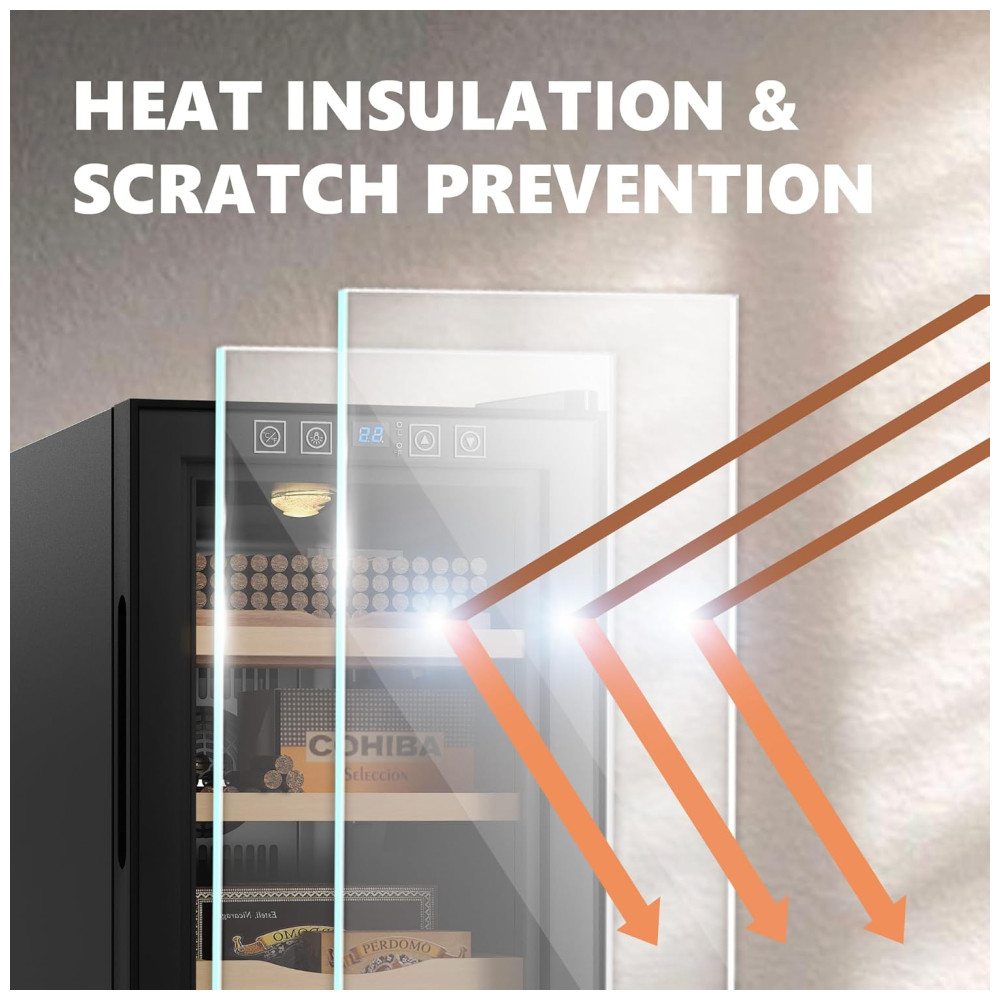 O Humidificador Elétrico de Charutos EUHOMY oferece uma solução completa com funções de refrigeração e aquecimento. Com capacidade de 25 litros e 3 camadas de armazenamento, incluindo madeira de cedro espanhol, este umidor proporciona um ambiente inteligente para seus charutos. O display digital de vidro duplo, assegura a vedação superior da porta, enquanto o sistema de circulação de ar de 360 graus mantém a umidade adequada de forma uniforme. Além disso, seu funcionamento silencioso torna-o ideal para qualquer ambiente.