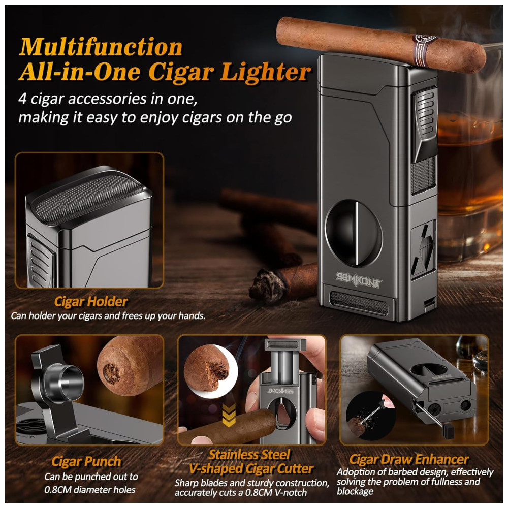 O umidor de Charutos SEMKONT é feito com materiais de alta qualidade, como cedro espanhol premium. Sua superfície possui um acabamento em laca polida, suave e resistente ao desgaste. As dobradiças em aço inoxidável são robustas e flexíveis, permitindo que o umidor seja aberto facilmente. A vedação excelente mantém o aroma natural dos charutos, proporcionando um sabor mais delicado e suave. Além disso, possui uma gaveta separada para acessórios, fecho vintage e base em veludo para proteção. O isqueiro de 4 chamas é resistente ao vento e o design integrado inclui um cortador de charutos em V, suporte para charutos e perfurador. O umidor de barra garante a umidade ideal, enquanto o higrômetro embutido monitora o ambiente. Com capacidade para até 2035 charutos, este humidor oferece o espaço perfeito para armazenar e organizar seus charutos com praticidade.