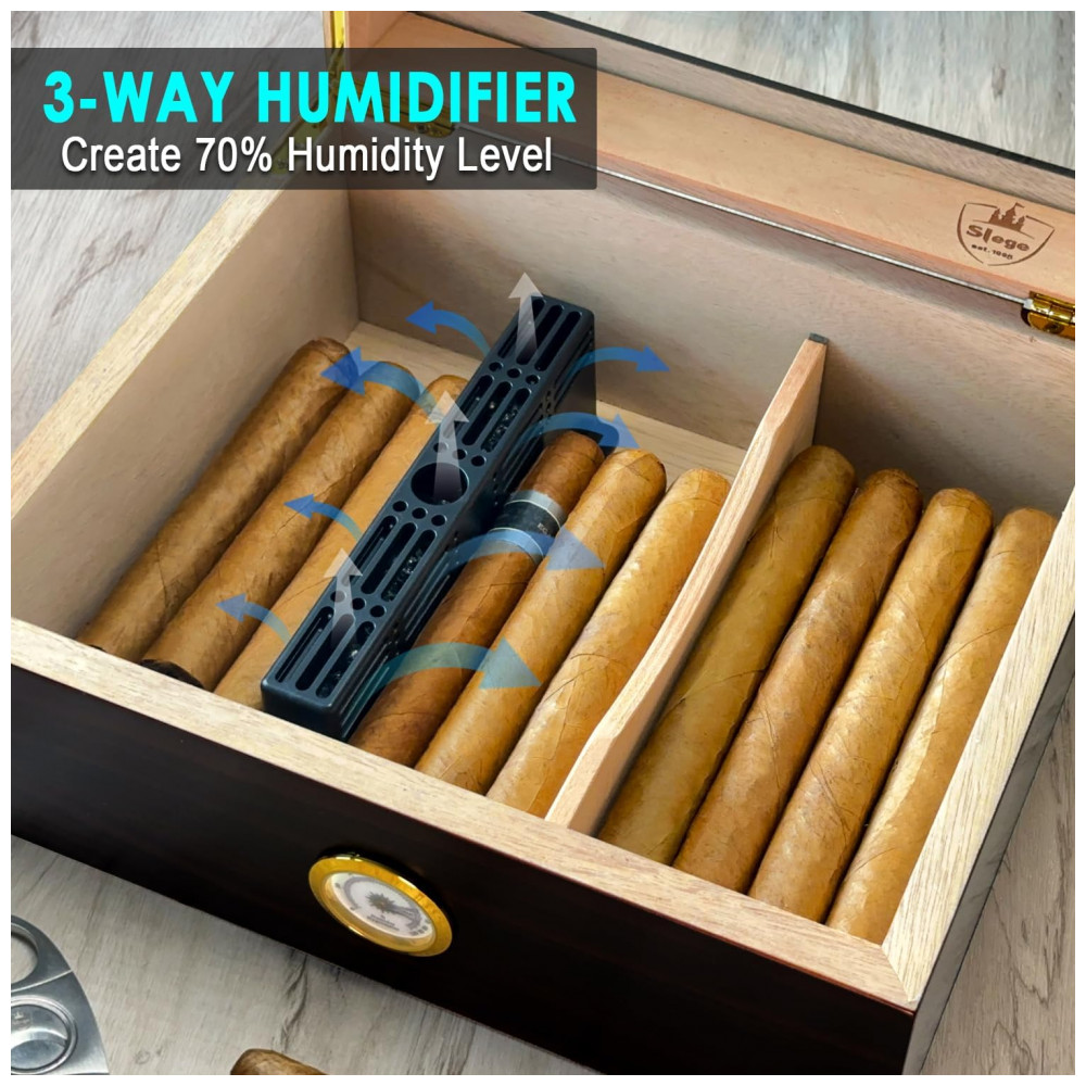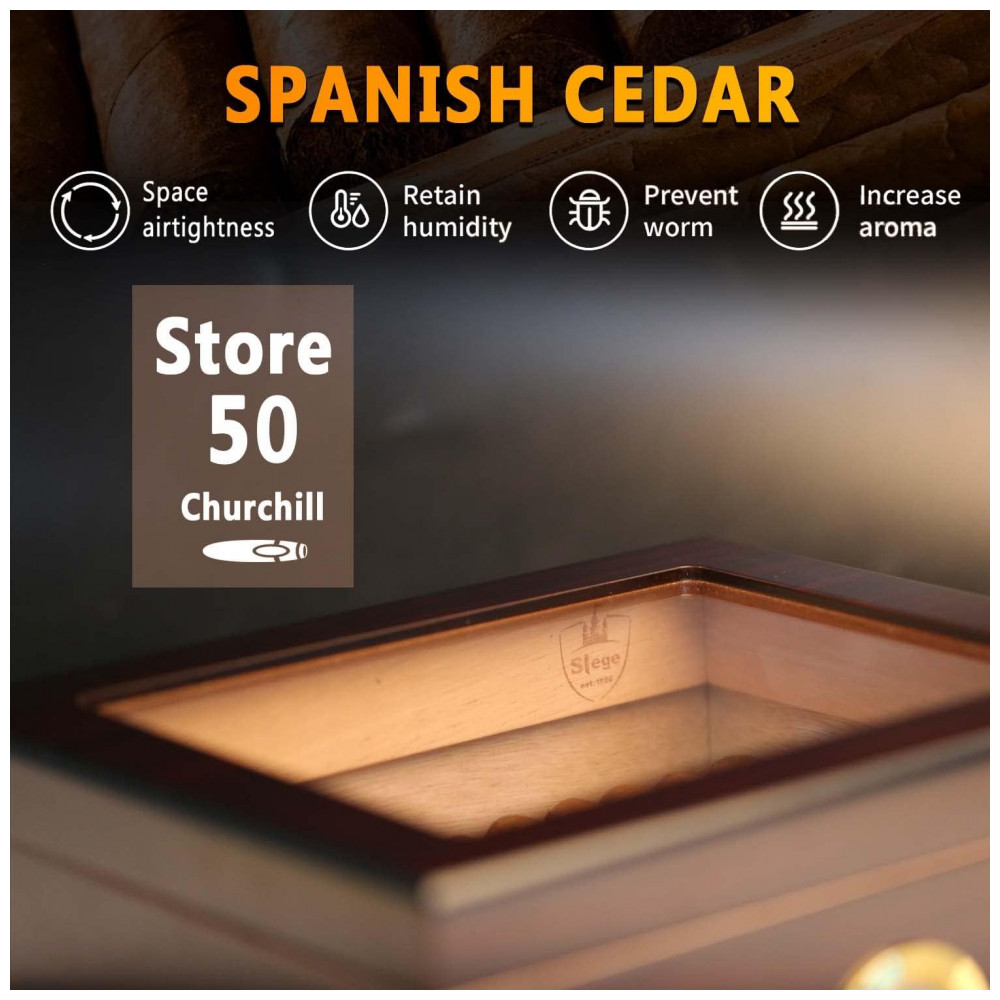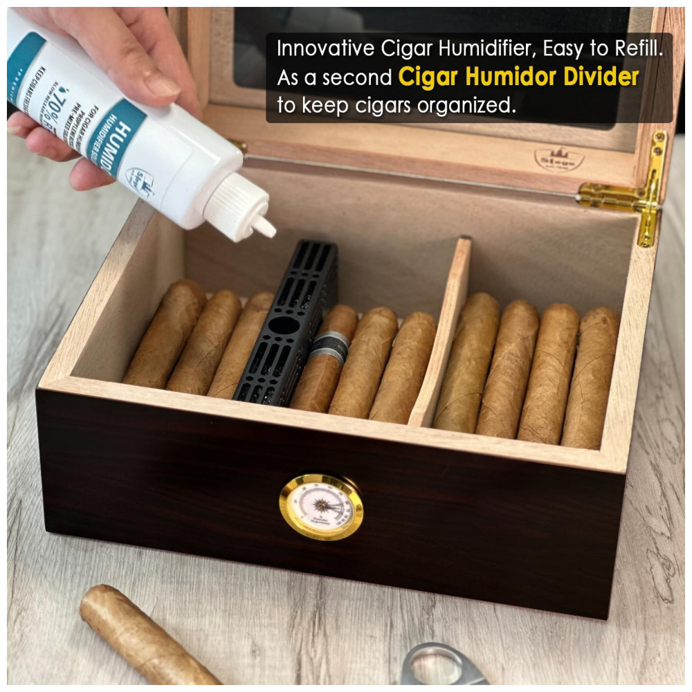 Umidor de Charutos Slege 300g Caixa para Charutos Cubanos Tampa de Vidro e Cedro Espanhol Umidade Controlada Divisória Higrômetro Presente Sofisticado.