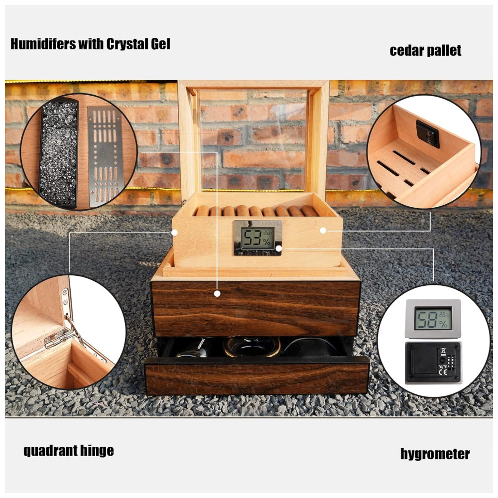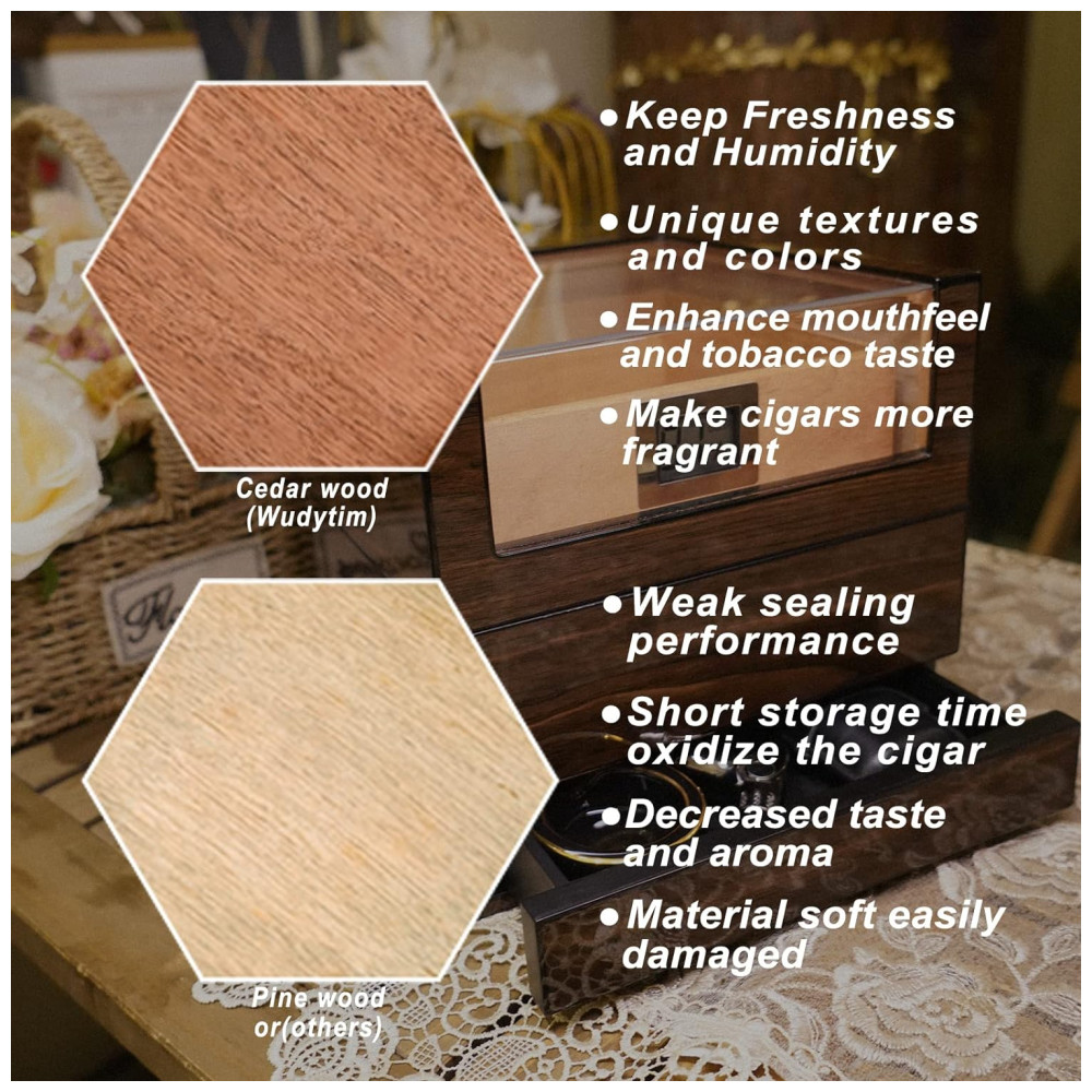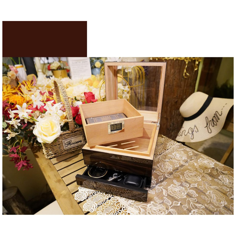 Umidor de Charutos TUTUNES: Caixa Artesanal de Cedro Espanhol com Umidificação Fácil e Higrômetro Digital – Brilhante