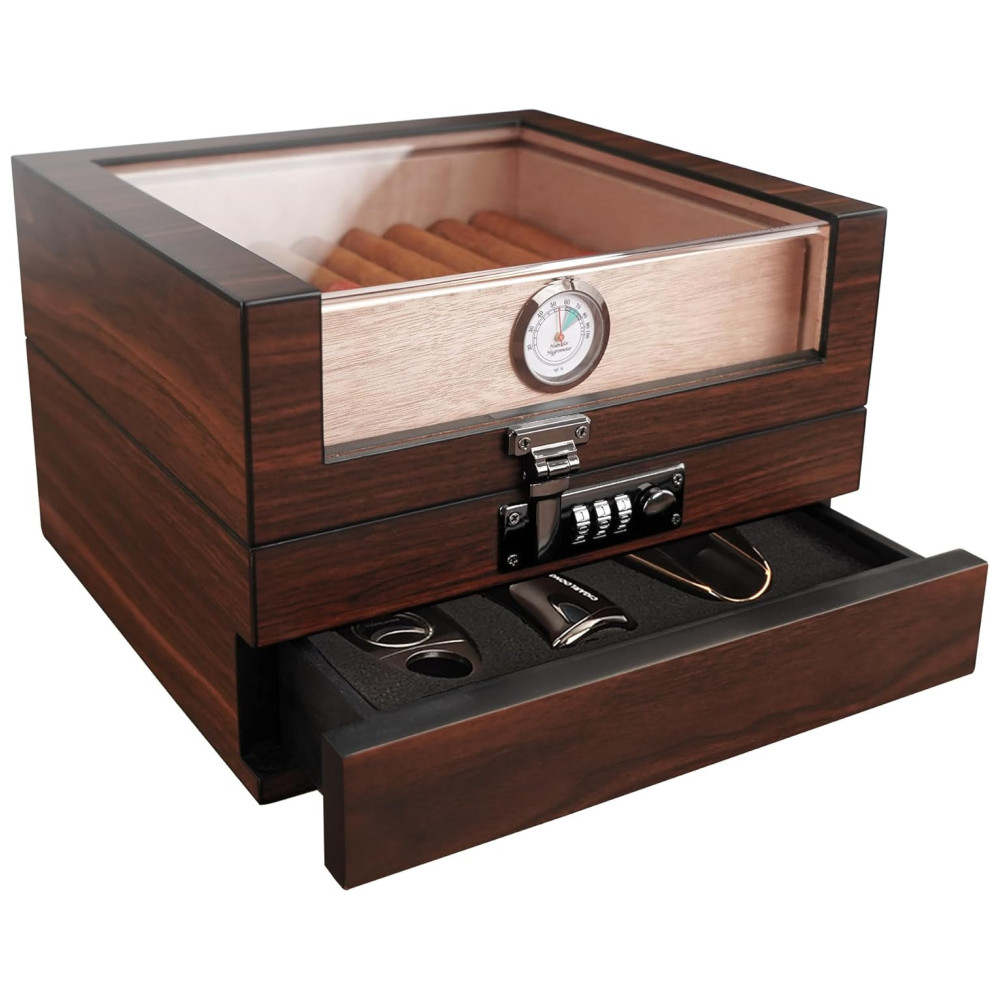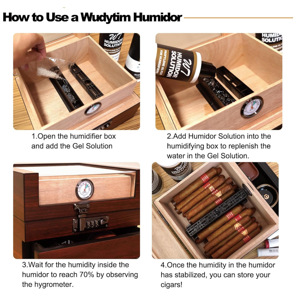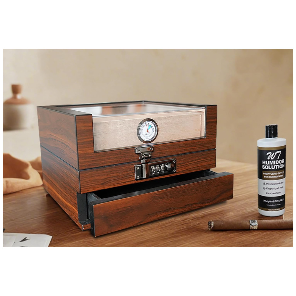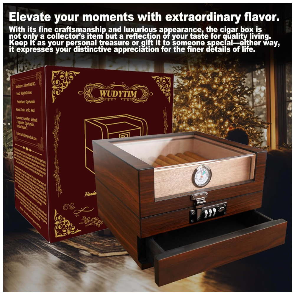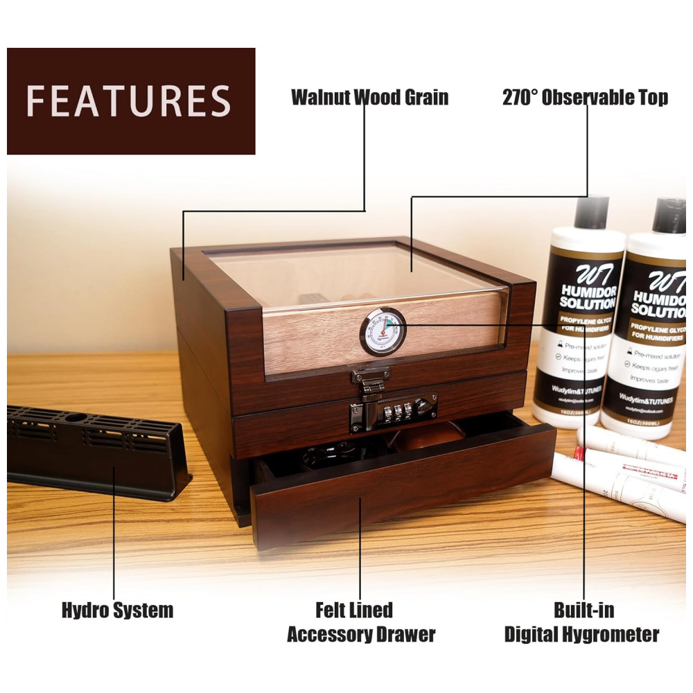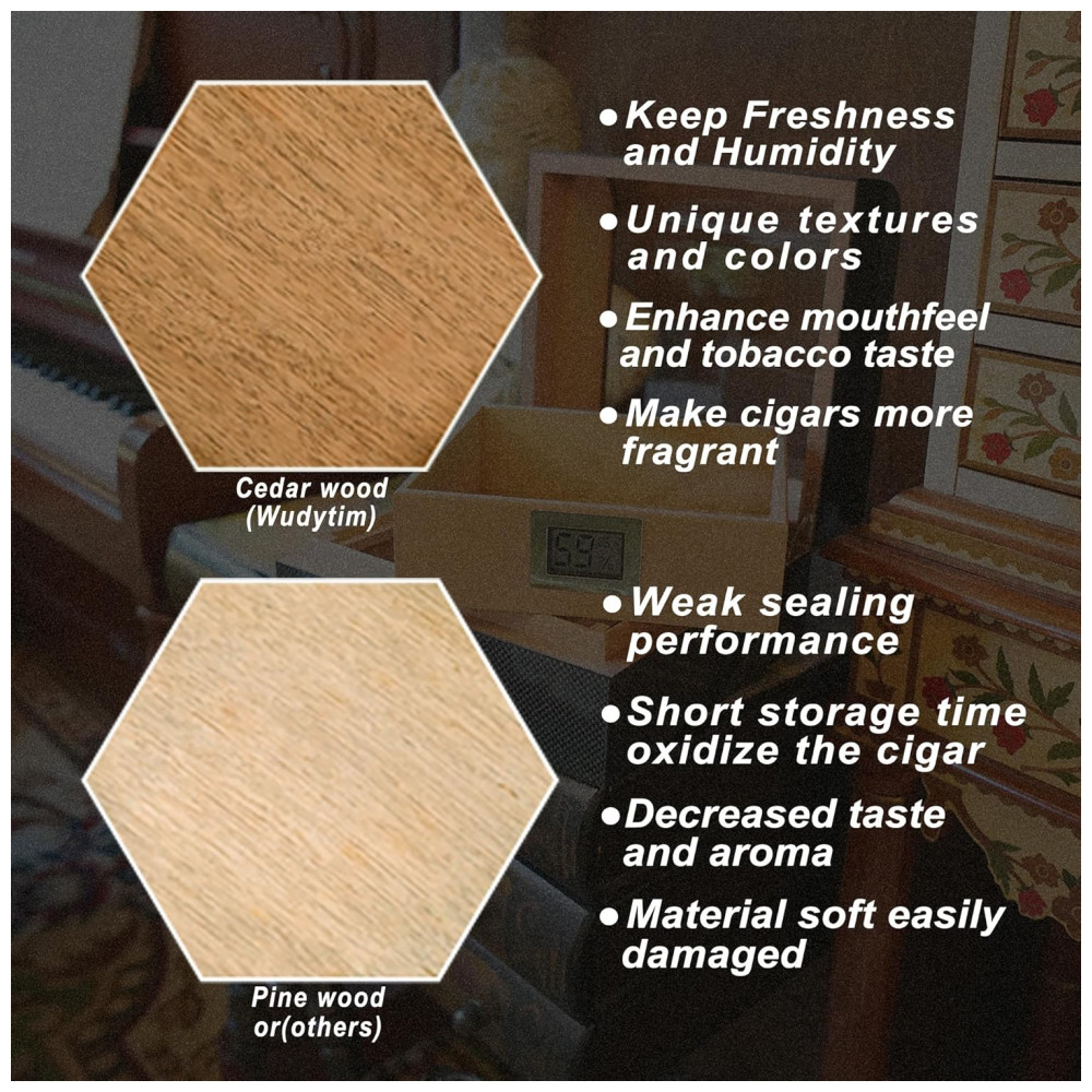 Umidor de Charutos TUTUNES&Wudytim Caixa de Cedro Espanhol com Sistema de Umidificação Fácil e Higrômetro Preciso para 25 a 50 Charutos
