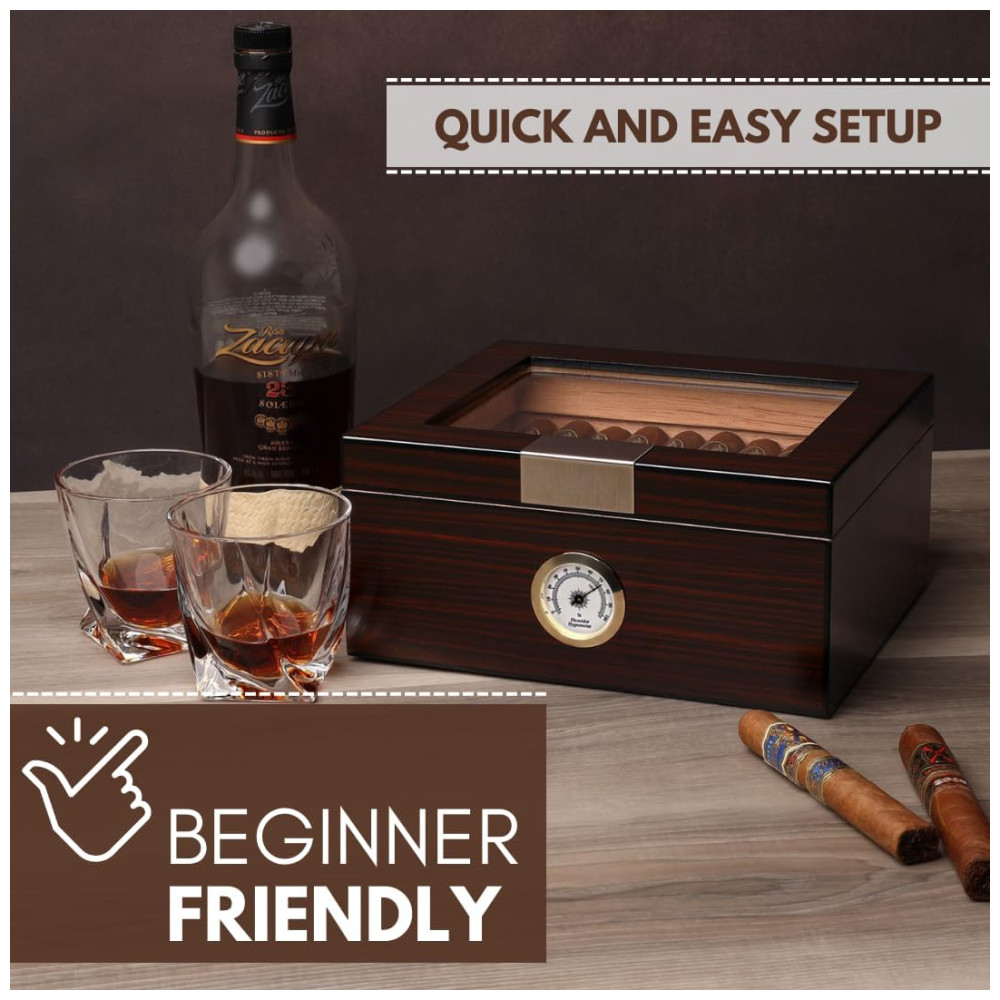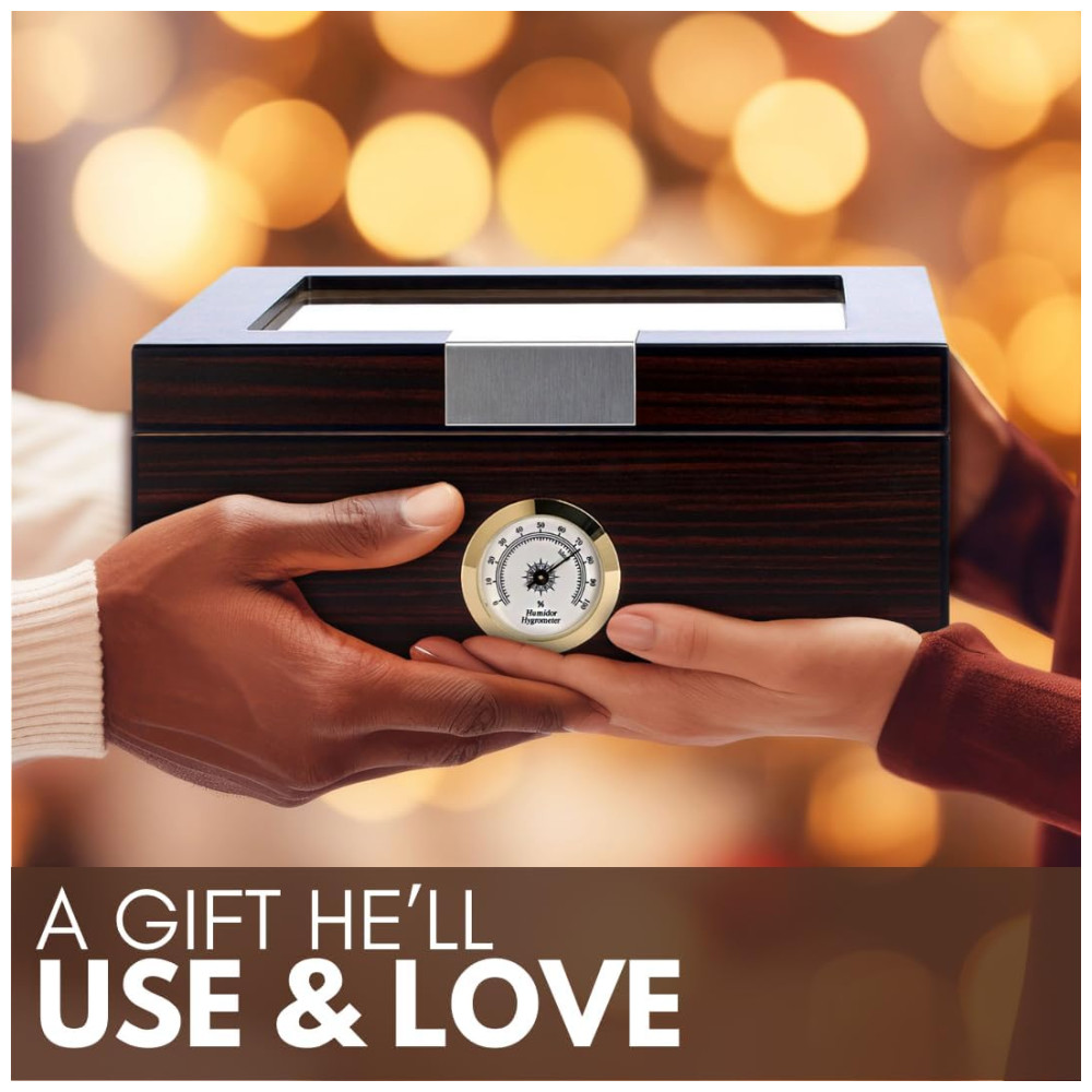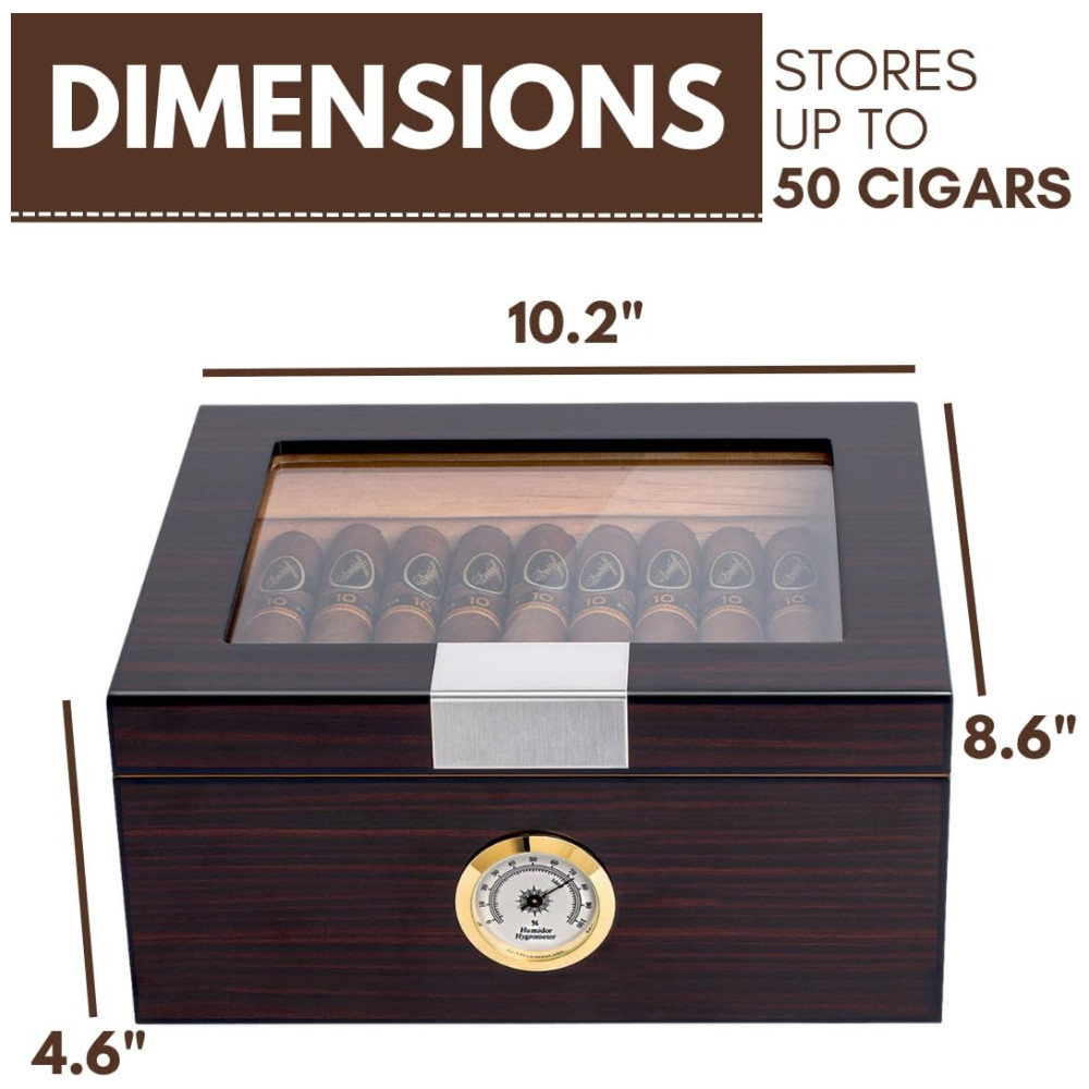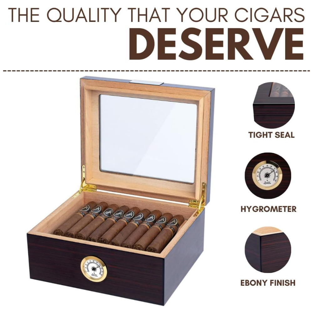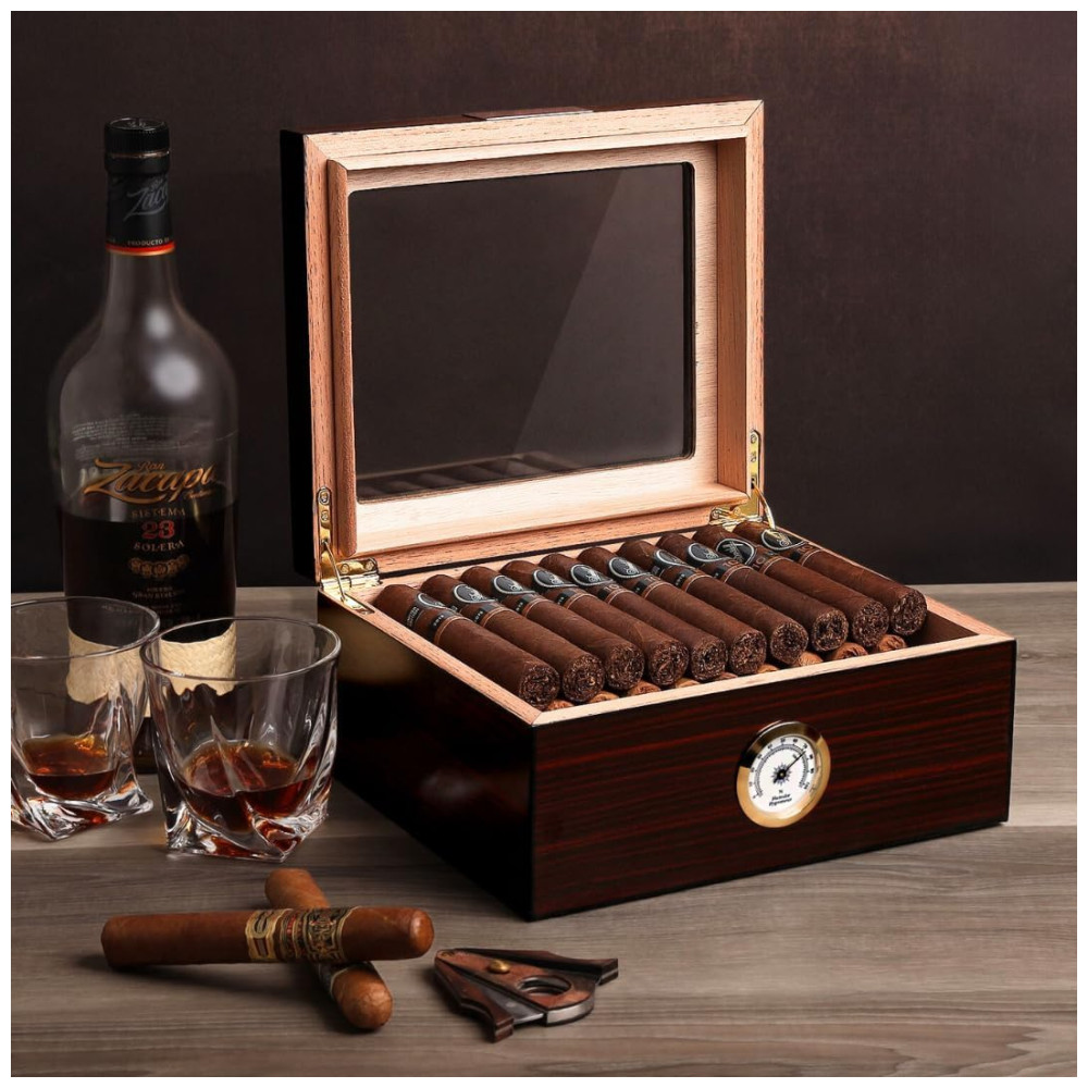 Umidor de Luxo para Charutos – Armazenamento Sofisticado para 25-50 Charutos com Medidor de Umidade e Umidificador Caixa de Cedro -Mantello Cigars