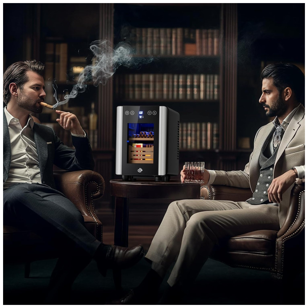 A tela sensível ao toque permite ajustes simples com um único toque. Equipado com trava de segurança, protege sua coleção e impede que crianças abram o umidor acidentalmente, garantindo um ambiente seguro para armazenar seus charutos.