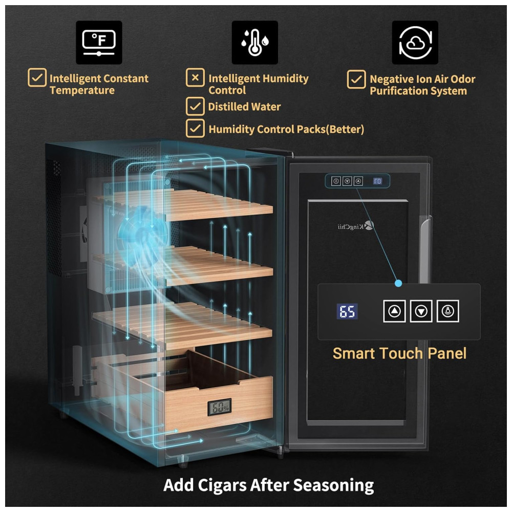 Umidor Elétrico KingChii 26 Litros para Charutos Gabinete com Controle de Temperatura de Cedro Espanhol Gaveta Higrômetro – Presente Masculino