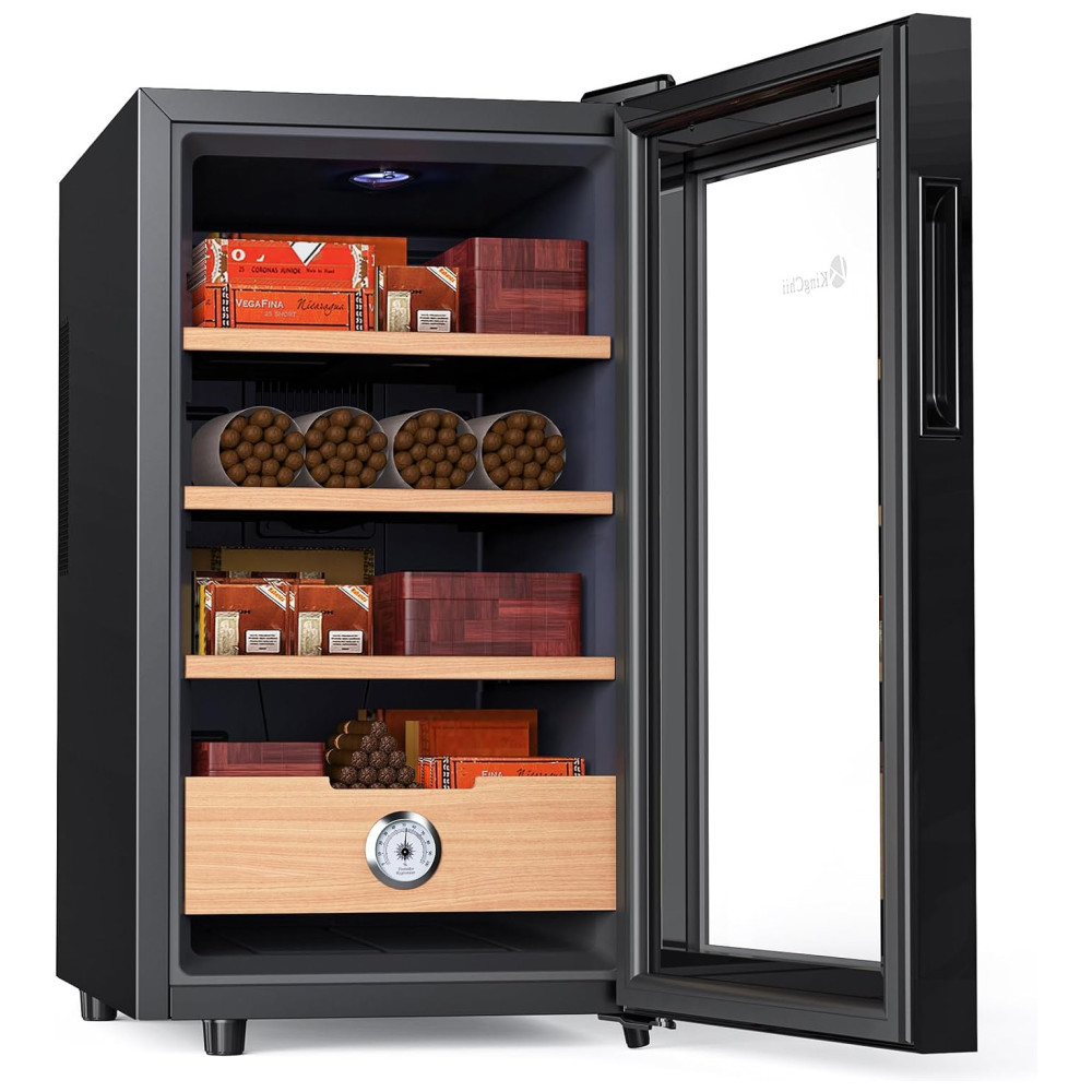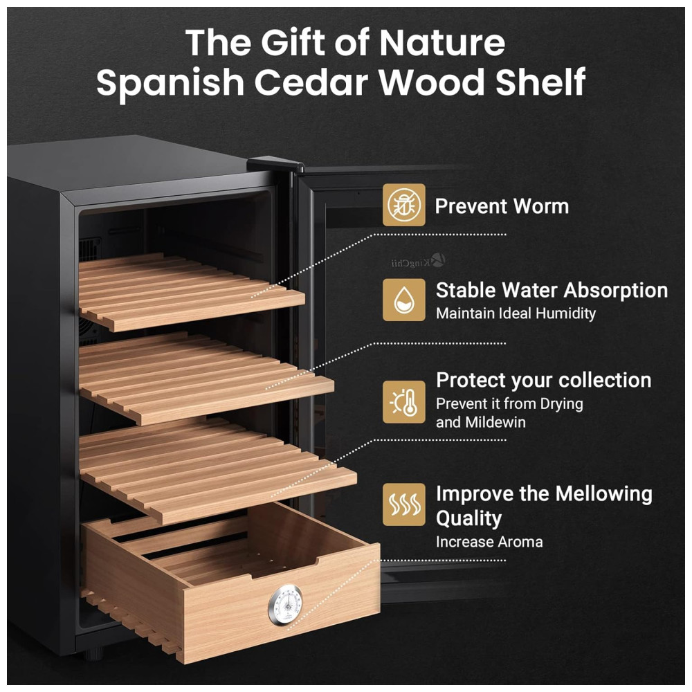 Umidor Elétrico KingChii de 48 Litros Controle de Temperatura com Armário de Cedro Espanhol Gaveta e Higrômetro – Presente Ideal para Homens