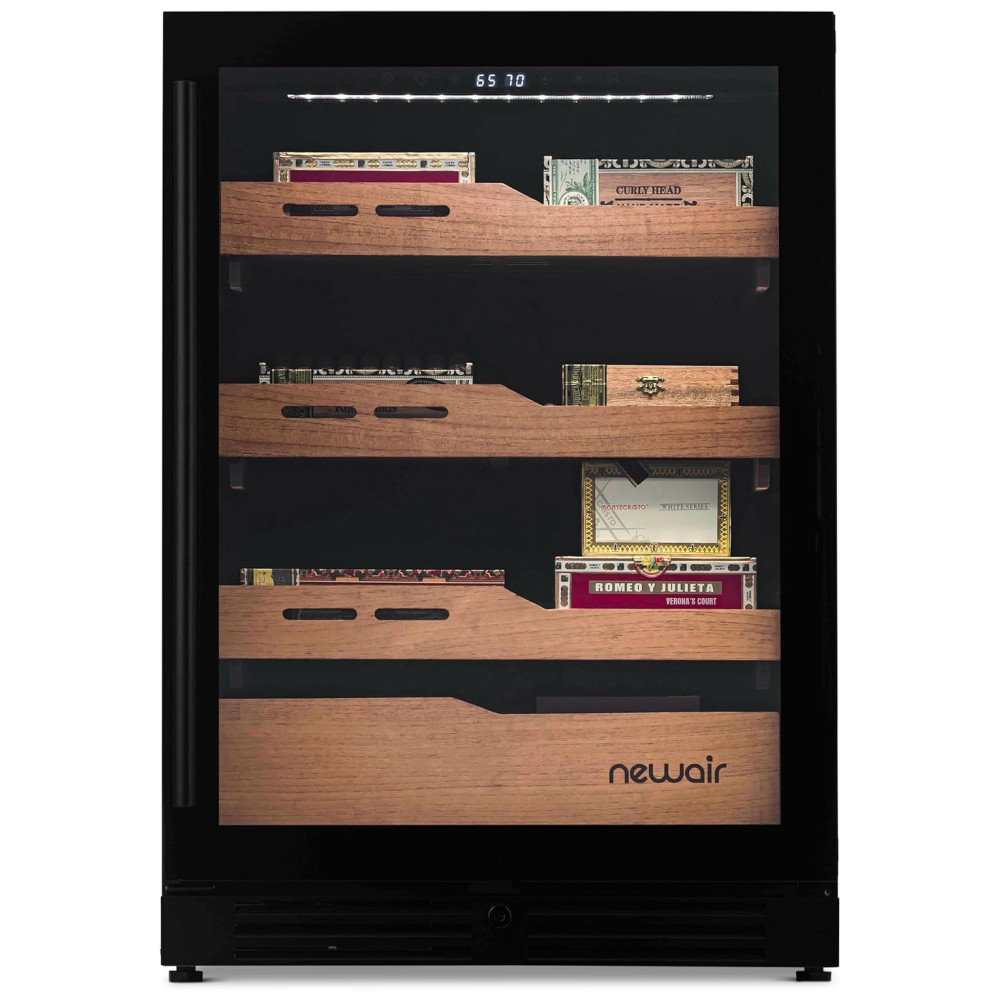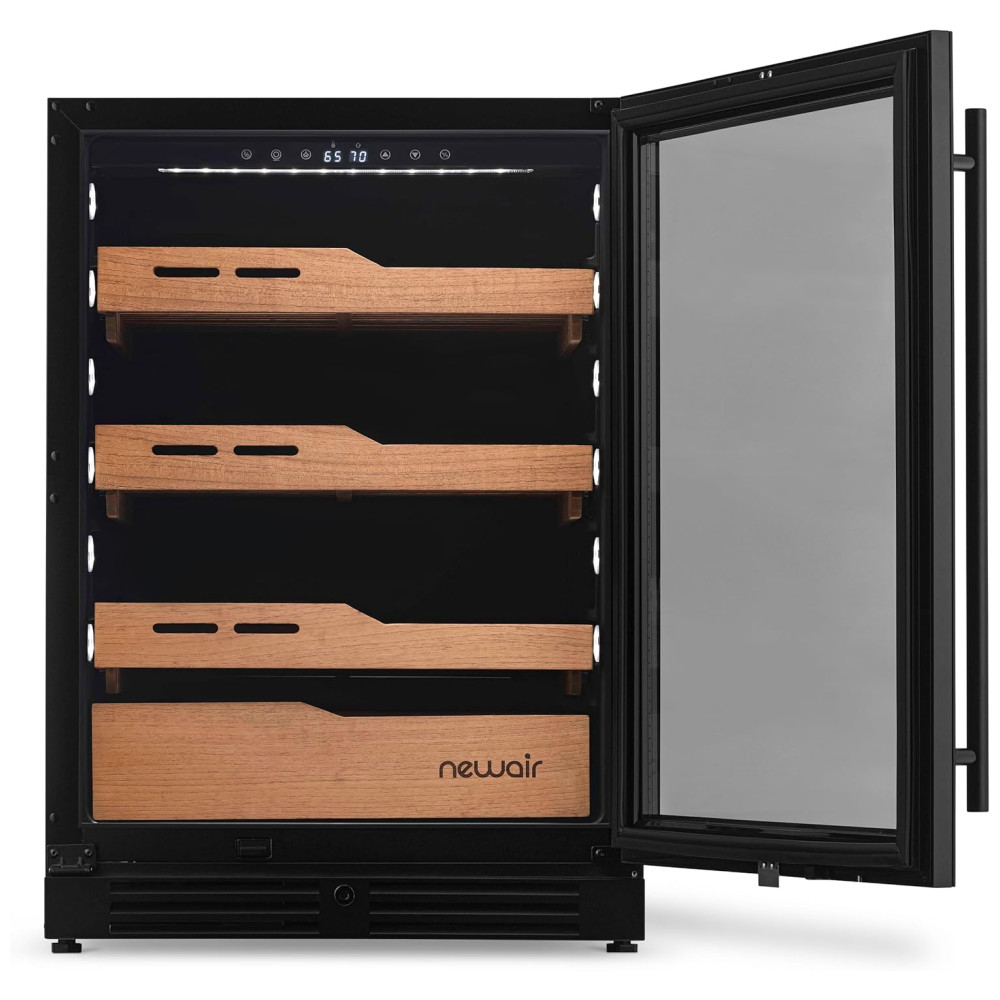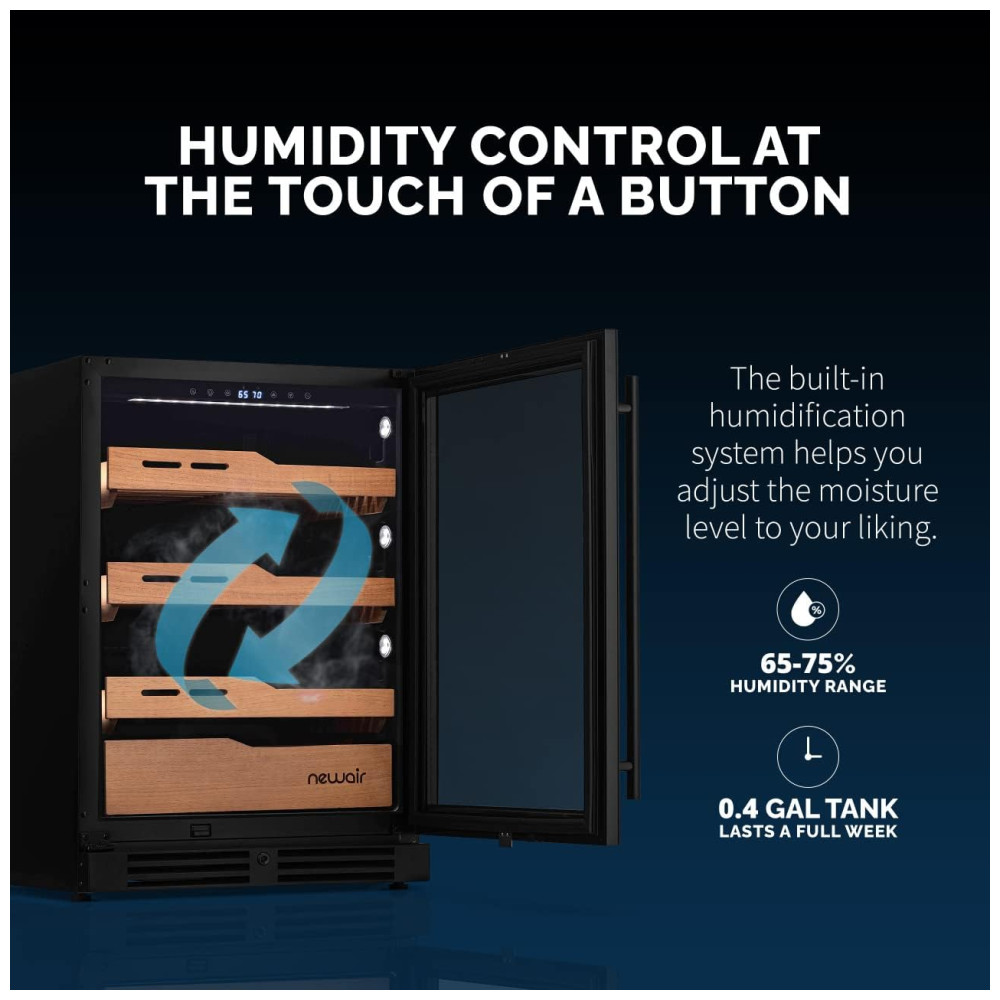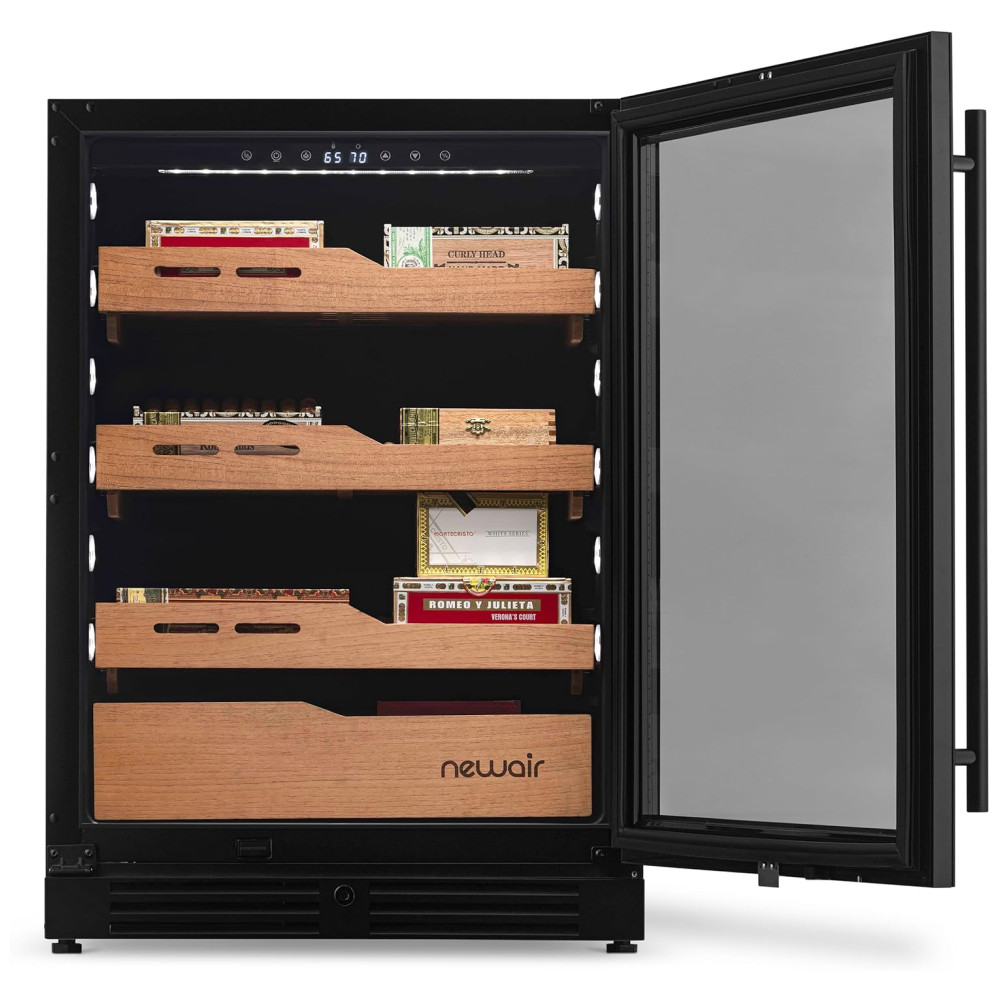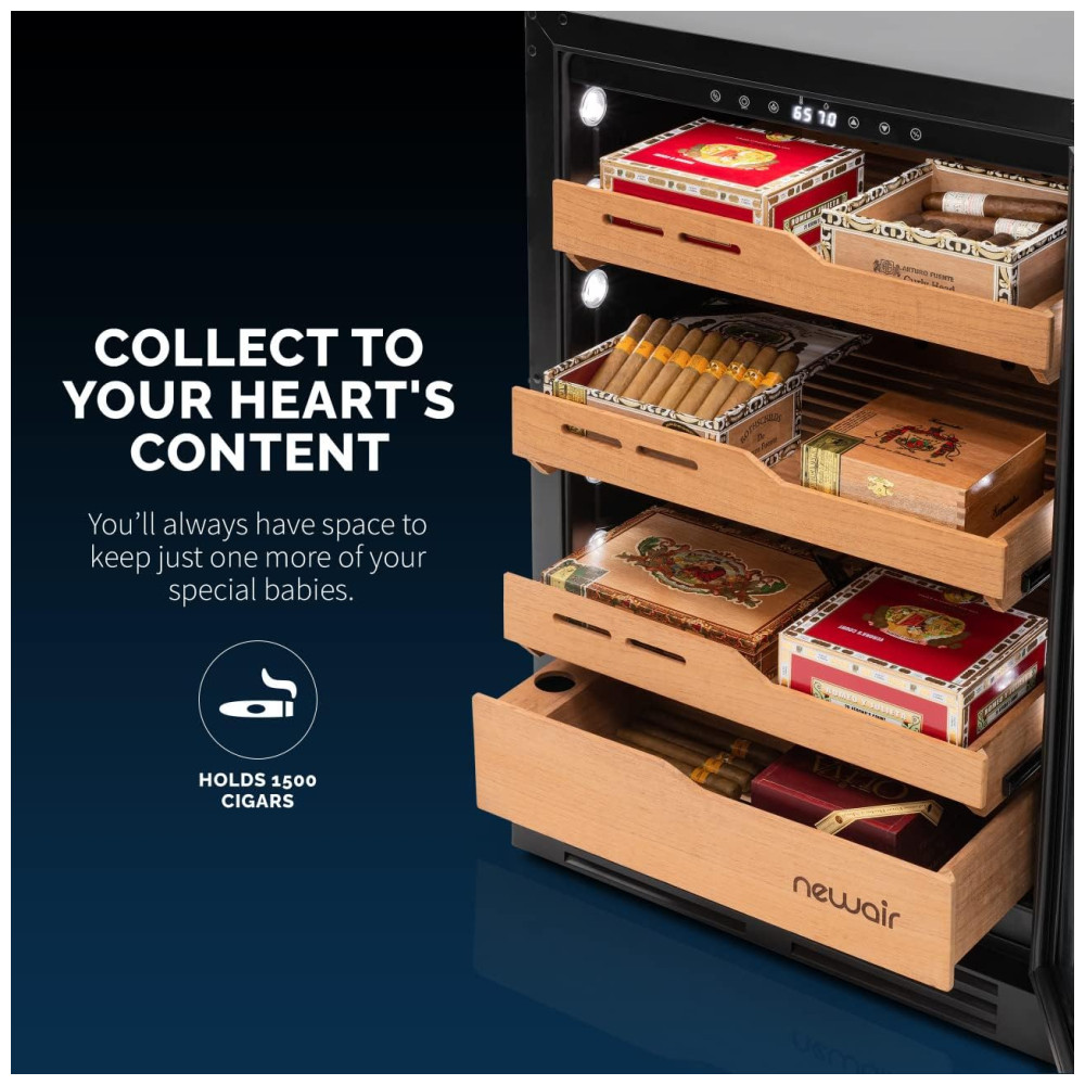 Umidor Elétrico NewAir 1500 Cigarros Sistema de Umidificação Integrado Função de Aquecimento e Resfriamento Opti-Temp Temperatura Precisa.