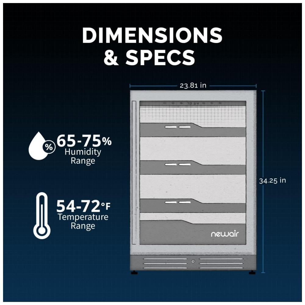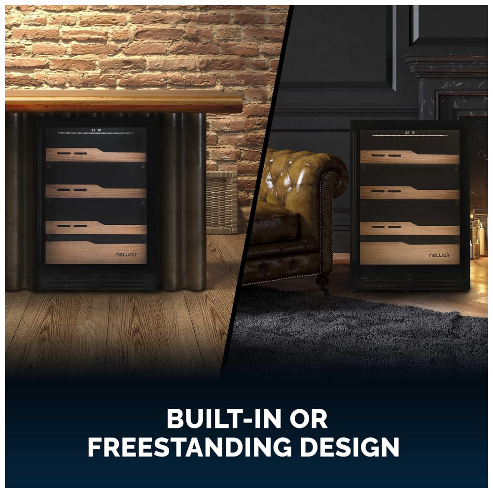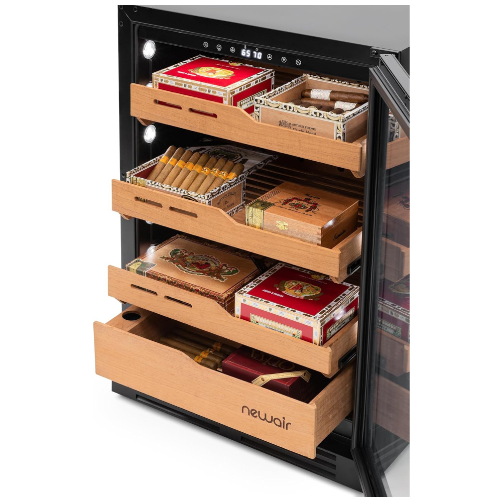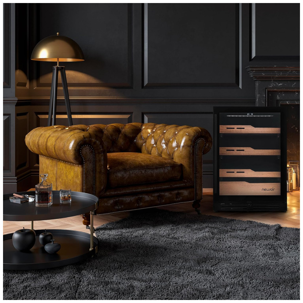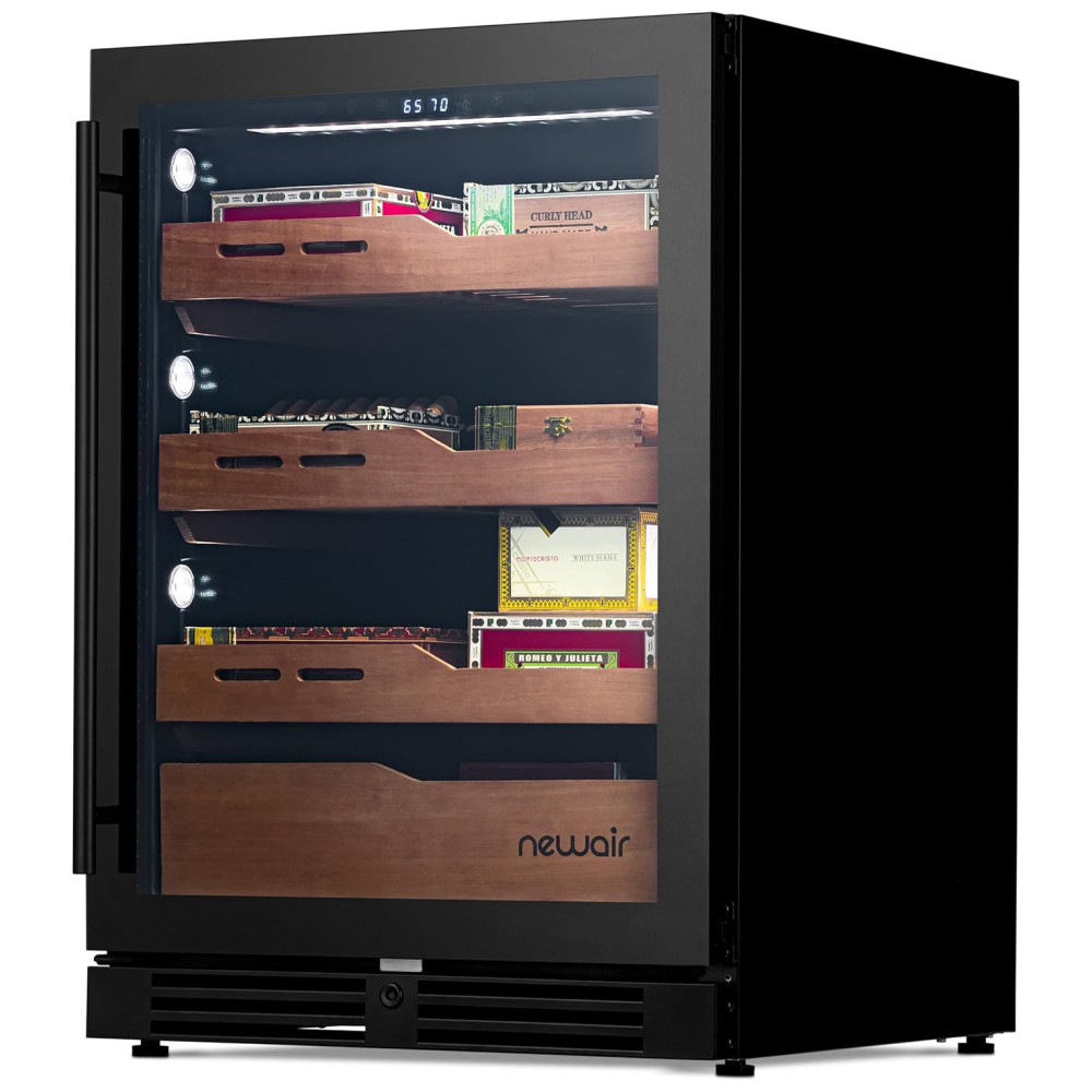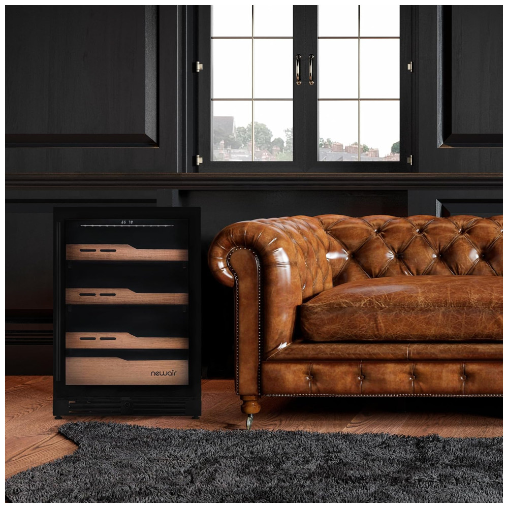 Umidor Elétrico NewAir 1500 Cigarros Sistema de Umidificação Integrado Função de Aquecimento e Resfriamento Opti-Temp Temperatura Precisa.