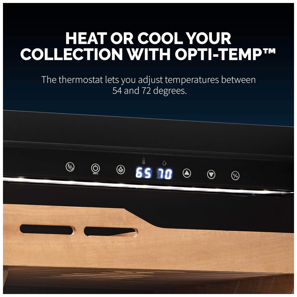 Aquece ou Resfria com Opti-Temp: Refrigeração por compressor e aquecedor integrado facilitam a manutenção dos charutos frescos. Ajuste a temperatura entre 12°C e 22°C.