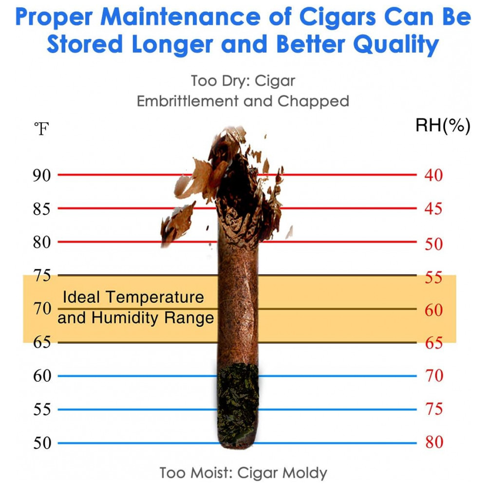 CONTROLE ELETRÔNICO Este refrigerador de charuto eletrônico ajuda a evitar flutuações de temperatura e umidade zenadas em um ambiente natural e fornece uma faixa de temperatura ajustável pelo usuário 15 a 22 C adequada para zenamento mais longo e melhor sabor.