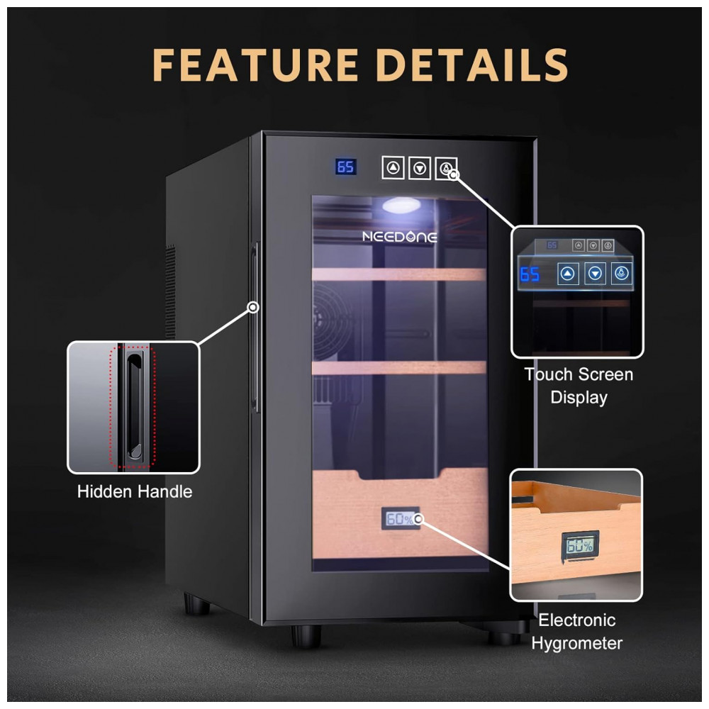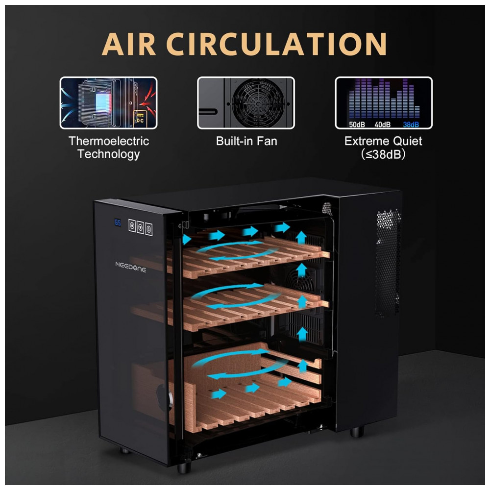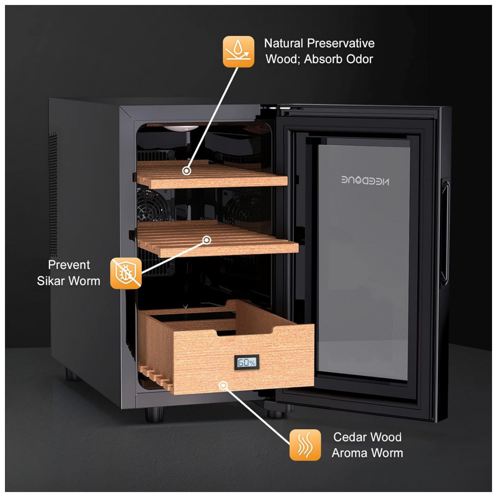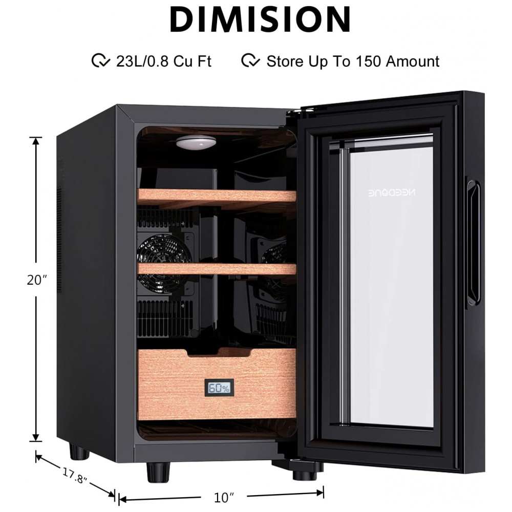 Umidor Elétrico para Charutos 150 Unidades com Prateleiras Higrômetro e Luz Led 110 Volts NEEDONE Preto